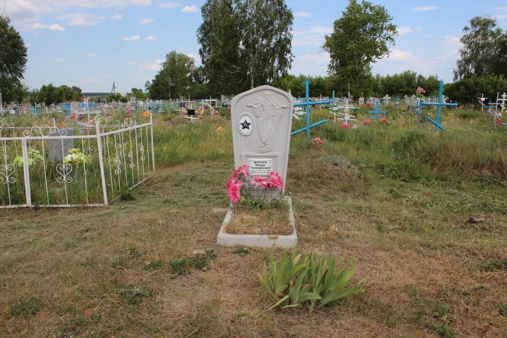 Объемно-пространственная композиция памятника, состоящая из надгробия в виде стелы; имеющееся захоронение; мемориальная доска с высеченным именем погибшего воина \"Жердев Макар Тимофеевич\", установленная на стеле.