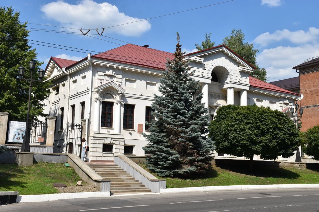 Объемно-пространственная композиция П-образного в плане здания, с неглубокими боковыми ризалитами на северном фасаде, главным фасадом ориентированного на юг; габариты и конфигурация крыши, высотные отметки по конькам, характер кровельного покрытия; местоположение, габариты, конфигурация и оформление оконных проемов здания; местонахождение, габариты, конфигурация и оформление дверных проемов: прямоугольного дверного проема первого этажа на главном фасаде здания, дверного проема с арочным завершением в цокольном этаже на западном фасаде, прямоугольных дверных проемов на северном фасаде; архитектурно-художественное оформление фасадов: - цоколь гладкого рисунка в основной части фасадов и рустованный на ризалитах и портике главного фасада, нишки цокольного и антресольного этажей, междуэтажный карниз, венчающий профилированный карниз с мутулами на главном и боковых фасадах и простой венчающий карниз на дворовом фасаде; центральный портик главного фасада с 4-мя круглыми колоннами и капителями коринфского ордера, венчающий колонны разорванный треугольный фронтон: центральная ось портика разорвана высокой аркой с рустованным обрамлением, фронтон завершен венчающим карнизом, высокие неширокие нишки, расположенные около двери главного фасада, полуциркульная ниша с цветочным заполнением над дверью, карниз на модульонах, фриз главного фасада, заполненный нишкой с лепными цветами; - фланкирующие главный фасад небольшие выступающие ризалиты в одну оконную ось, 4 полуколонны ионического ордера (по 2 полуколонны в ризалите) несущие щипец, кронштейны над полуколоннами, полуциркульные ниши над окнами с лепным орнаментом, нишки с лепным декором в виде лавровой гирлянды; - фронтоны западного и восточного фасадов выполненные в классической форме с венчающим карнизом с мутулами, поддерживающие фронтоны небольшие ризалиты, фронтон северного фасада с венчающим карнизом; материал капитальных стен - кирпич; материал и конструкция перекрытий - цилиндрические своды в цокольном этаже; пространственно-планировочная структура интерьера: восстановленная первоначальная планировка здания - анфиладно - зальная: архитектурно-художественное оформление интерьера: форма и размеры внутренних дверных проемов и дверного заполнения, притолоки, сандрик на кронштейнах в форме волют и нишки выделенные по периметру рельефом над дверями первого этажа, широкий карниз, две узкие лепные тяги в одном из залов (в других залах по одной тяге), арочные проемы антресольного этажа с деревянным ограждением, потолочные гипсовые лепные розетки, восстановленные в залах первого этажа печи, восстановленный паркетный пол.