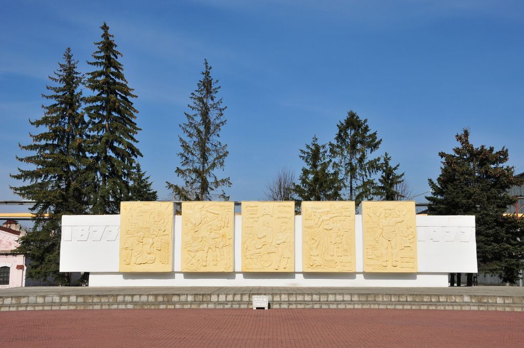 1.Градостроительные характеристикиОбъект культурного наследия расположен на территории Брянского машиностроительного завода – БМЗ, на его главной аллее. Объект участвует в планировочной структуре завода, взаимодействуя с существующими объектами истории. 2.Объемно-пространственная композиция памятникаПамятник состоит из прямоугольной площадки-основания, на которой установлена вытянутая прямоугольная стена с навешенными на нее пятью рельефными плитами, изображающими значимые события столетнего развития завода. Задняя часть монумента и его торцевые части гладкие без надписей и изображений. На юго-восточном торце установлена информационная табличка с указанием автора и даты открытия монумента.3.Строительные конструкции, техника исполнения.Существующие параметры площадки-основания монумента. Сохранившиеся конструктивные особенности монумента, его прямоугольной стены и пяти рельефных плит.4.Архитектурно-художественное оформление памятника.Изображения и надписи, шрифт и габариты символов на дату создания объекта – 1973 год. Надпись «1873» на лицевой стороне вытянутой прямоугольной стены слева. Гладкие цифры надписи расположены в прямоугольной заглубленной полосе с отделкой «под шубу».Надпись «1973» на лицевой стороне вытянутой прямоугольной стены справа. Гладкие цифры надписи расположены в прямоугольной заглубленной полосе с отделкой «под шубу».На первой слева рельефной плите вверху слева изображены женская фигура, пара летящих птиц, могильный крест и заводские цеха; вверху – паровоз, справа – пара рабочих крутящих колесо; внизу слева сидит рабочий в рубахе с засученными рукавами. Справа внизу выполнена надпись: «Губонiнъ i ко Бѣжiца».На второй рельефной плите по центру изображен рабочий, правой ногой стоящий на крыле двуглавого орла, слева от которого надпись «1905». За рабочим слева изображена лежащая лицом вниз мужская фигура, над фигурой надпись «1916»; справа – группа из трех рабочих, последний из которых изображен со спины с протянутой левой рукой в сторону белогвардейца на коне, изображенного слева вверху. Вверху справа на лентах выполнены надписи «ВСЯ ВЛАСТЬ СОВЕТАМЪ» и «1917».В центре центральной рельефной плиты по пояс изображен В.И.Ленин, под левой рукой которого на ленте выполнена надпись «22 ОКТЯБРЯ 1921 БУТЫРСКИЙ ХУТОР», над ним на ленте – знамя с серпом и молотом. Слева внизу – рабочий, сидящий на электроплуге, над ним надписи: «1918» и надпись на плитке «Брянские правила»; выше – заводской цех, над ним надписи на лентах «ПЯТИЛЕТКУ В 4», «ГОДА», выше большегрузный вагон на рельсах и под ним – железнодорожная цистерна на рельсах. Справа внизу изображен рабочий, который смотрит в центр композиции, в левой руке держит лист бумаги с надписью «ЛЕНИНСКИЙ ЗАКАЗ». Справа у головы рабочего изображен подъемный крюк, выше надписи на лентах «КАДРЫ РЕШАЮТ», «ВСЕ!», выше – паровоз. Завершает композицию надписи на лентах вверху плиты: «КРАСНЫЙ», «ПРОФИНТЕРН»Слева внизу четвертой рельефной плиты изображена женщина, стоящая на коленях с поднятыми руками. Справа внизу надписи на лентах «СЛАВА» «ПАВШИМ» «ГЕРОЯМ», над надписью языки пламени, колючая проволока, выше – корпуса и трубы завода, выше – две надписи на лентах «1941» и «1943». Завершает правый верхний угол плиты изображение взрыва Голубого моста. По цетру композиции и