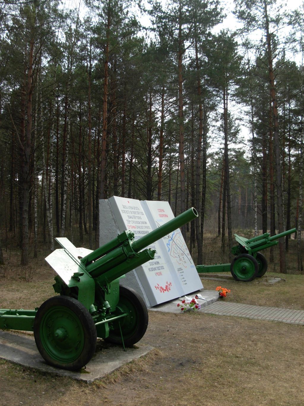Памятный знак - 76-мм орудие, установленное в честь воинов 50-й армии Брянского фронта, которые вели оборонительные бои против немецко-фашистских захватчиков на дальних подступах к Москве в октябре 1941 года