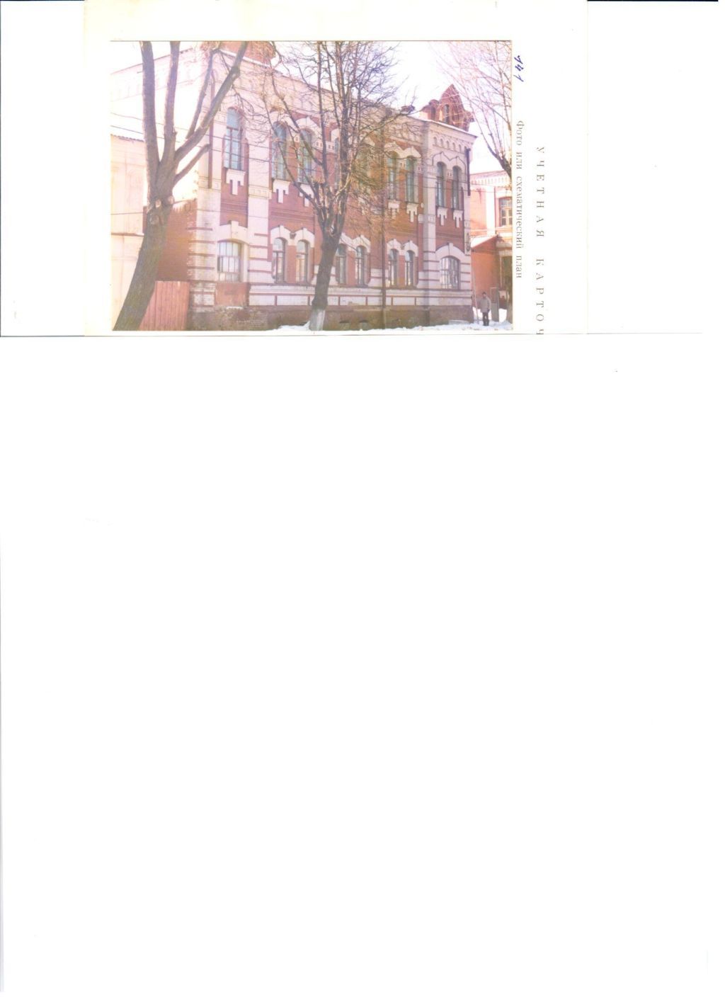 Градостроительное положение:- здание расположено по красно линии застройки ул. Калинина;- относится к элементам градостроительной акцентной застройки с относительно высокой градостроительной значимостью;- поддерживает сохранившуюся в его окружении историческую застройку.Расстановка и количество зданий, являющихся неотъемлемой частью ансамбля:Единый градостроительный ансамбль - здание по ул. Калинина, д. 221, расположено по красной линии улицы; Тихвинская церковь, расположенная на полусклоне горы с западной стороны.Объемно-пространственная композиция:- отдельно стоящее здание, имеющее в плане прямоугольную форму с ризалитами разных размеров со стороны уличного (восточного) фасада;- наличие выступа главного входного узла со стороны дворового (западного) фасада;- треугольные фронтоны;- вальмовая кровля.Архитектурно-художественное оформление здания:- ризалиты различного размера, завершенные фигурными стрельчатыми аттиками;- пирамидальное покрытие со срезанным верхом левого ризалита;- филенчатый пояс нижнего этажа;- филенчатый пояс второго этажа;- венчающий карниз с аркатурой и филенкой;- арочные окна со стрельчатыми перемычками обоих этажей между ризалитами, разделенные на три пары широкими лопатками;- Т-образные подоконные части;- массивные, с замковыми камнями архивольты, которые в верхнем этаже на уровне пят соединены ширинчатым поясом.Система внутренней планировки:- подвального этажа смешанного типа;- 1-го этажа - смешанная, половина здания коридорного типа;- 2-го этажа - смешанная, половина здания коридорного типа.Конструктивные особенности:- фундаменты - кирпичные;- подушка из бутового камня;- наружные стены этажей здания из керамического кирпича лицевой кладки с расшивкой швов на цементном растворе толщиной 880 мм;- декоративные элементы из керамического кирпича с последующей окраской;- перегородки этажей деревянные с последующей штукатуркой;- перекрытия подвального этажа и лестницы - сводчатое из кирпича по металлическим балкам;- перекрытие 1-го этажа и 2-го этажа плоское по деревянным балкам из хвойных пород древесины;- стропильная система деревянная, выполнена из бревен 250 мм;- кровля вальмовая.Месторасположение, габариты, конфигурация и оформление дверных и оконных проемов наружных стен здания:- оконные проемы (южного) фасада с лучковой аркой в качестве перемычки с мелкой расстекловкой имеют две световые оси;- оконные проемы уличного (восточного) фасада с лучковыми перемычками обоих этажей между ризалитами, разделенные на три пары широкими лопатками. Арочные окна с лучковыми перемычками ризалитов первого этажа и мелкой расстекловкой;- оконные проемы восточного фасада имеют 5 световых осей;- оконные проемы западного фасада арочные с лучковыми перемычками с мелкой расстекловкой имеют 4 световые оси;- оконные проемы подвального этажа арочные с лучковыми перемычками, один дверное проем, расположенные с дворового (западного) фасада арочный с лучковой перемычкой.Стилистические особенности образа архитектуры конца XIX - начала XX веков:- здание выполнено в новорусском стиле.Характерная черта новорусского стиля - богатство, некоторая перегруженность деталями архитектурной обработки зданий.Внутренне декоративное убранство:- железобетонная лестница с кованным ограждение в стиле модерн;- плиточное керамическое 