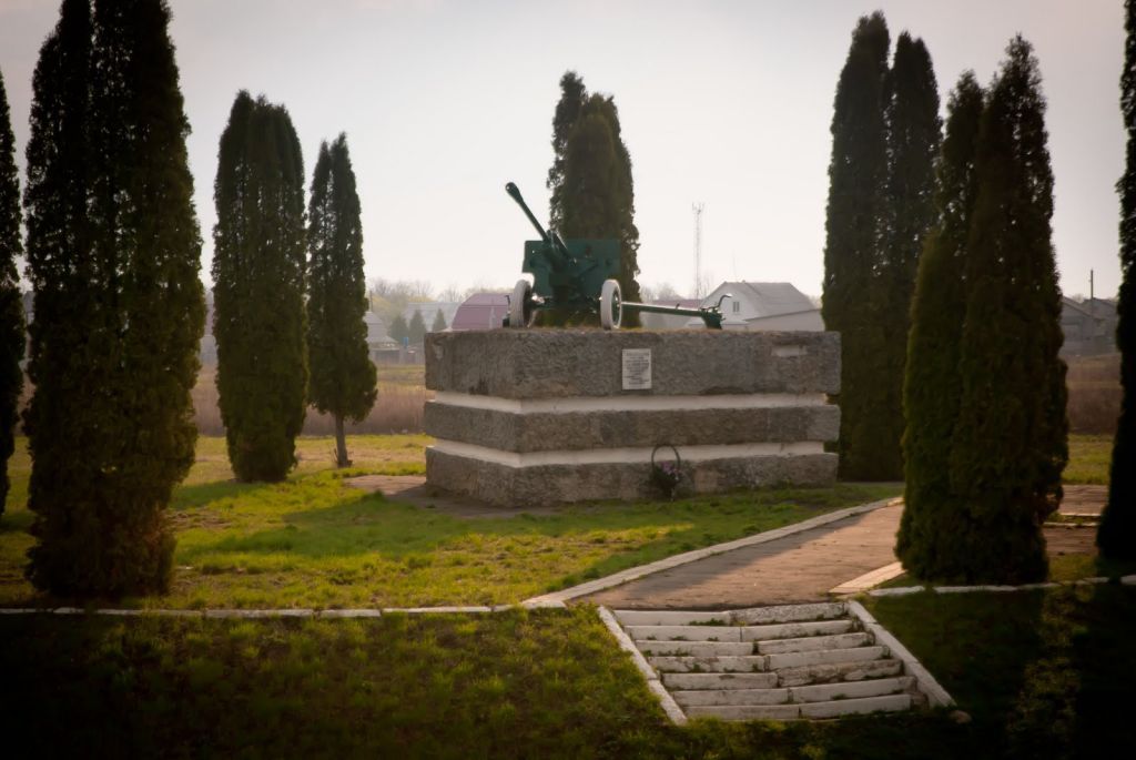 Памятный знак - 76-мм орудие, установленное в честь воинов 2-й танковой и 65-й армий, освободивших город от немецко-фашистских захватчиков