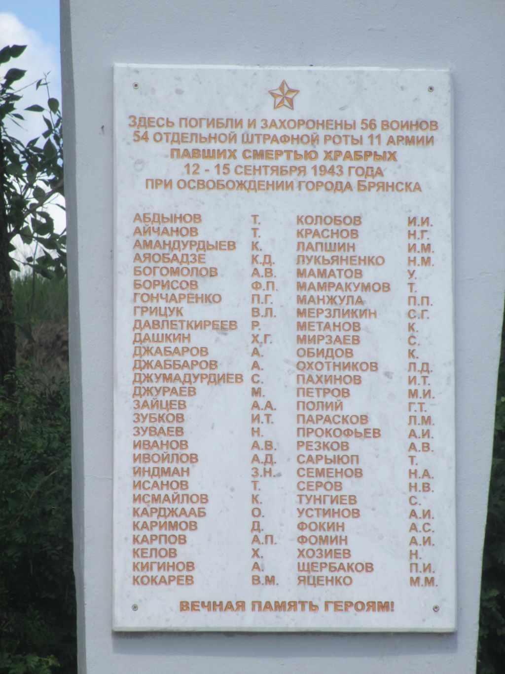 Братская могила воинов Советской Армии, погибших в 1943 г. в боях с немецко-фашистскими захватчиками при освобождении города Брянска