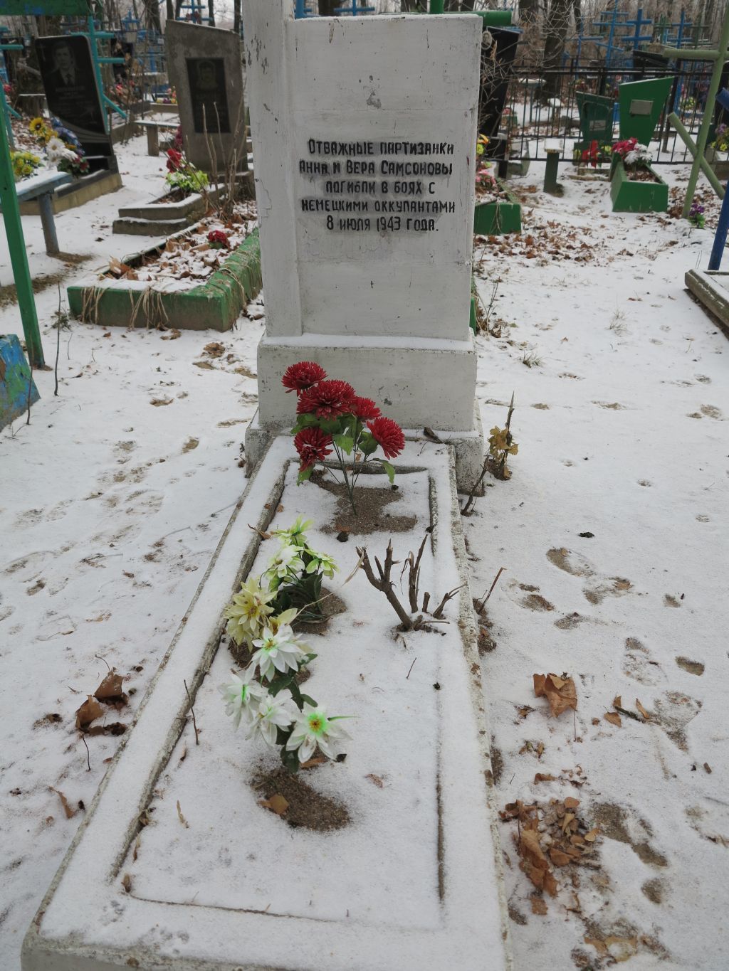 Братская могила сестер-партизанок Анны и Веры Самсоновых, погибших в 1943 г. в бою с немецко-фашистскими захватчиками