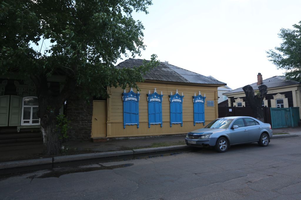 1.Местоположение объектаДом расположен в исторической части города на южной стороне улицы Банзарова, фиксирует красную линию застройки северным фасадом2.Объемно-планировочное решениеОдноэтажный, прямоугольный в плане3.Строительные конструкции и материалНаружные стены. Материал: дерево4.Конфигурация кровли Конфигурация: вальмовая5.Декоративные элементы фасадов:5.1Карниз, его местоположение, конфигурация и материалМестоположение: по периметру.Конфигурация: профилированный небольшого выноса. Материал: дерево5.2Фриз, его местоположение, конфигурация, материалМестоположение: по периметру.Конфигурация: из двух гладких досок, выполненных горизонтально - ступенчато, стык фриза с карнизом закрыт пояском. Материал: дерево5.3Обшивка фасада, ее местоположение, конфигурация и материал.Местоположение: северный и западный фасады. Конфигурация: из двух видов калеванной доски (широкой и узкой), расположенных в горизонтальном направлении от фриза до уровня низа оконных проемов и вертикальном - от низа оконных проемов до фундамента. Материал: дерево5.4Оконные проемы, их местоположение, конфигурация и количествоМестоположение: северный, западный и южный фасады. Конфигурация: с лучковым завершением. Количество: 6 (северный фасад – 4, западный – 1, южный -1)5.5Наличники, их местоположение, конфигурация, декор, количество и материал Местоположение: северный и западный фасады. Конфигурация: повторяют форму окна.Декор: доска лобани наличников декорирована рельефной резьбой типа «полотенце с кистями». Лобань завершает профилированный карниз типа «фронтон с отворотами наружу». Наличники венчают декоративные акротерии пропильного узора. Фартук криволинейной формы с боковыми фигурными свесами. Количество: 5 (северный фасад – 4, западный – 1). Материал: дерево5.6Ставни, их местоположение, конфигурация, количество и материалМестоположение: северный и западный фасады. Конфигурация: двустворчатые филенчатые, двухчастные, повторяют форму окна. Количество: 5 (северный фасад - 4, западный -1). Материал: дерево5.7Зашивка выпусков бревен, ее местоположение, конфигурация, декор, количество и материал Местоположение: северный и восточный фасады. Конфигурация: зашивка из гладких досок, вертикально расположенных.Декор: профилированные пояски, имитирующие пилястры; зубчатые пояски в верхней части; накладные элементы объемной резьбы. Количество: 3 (северный фасад – 2, восточный -1). Материал: дерево