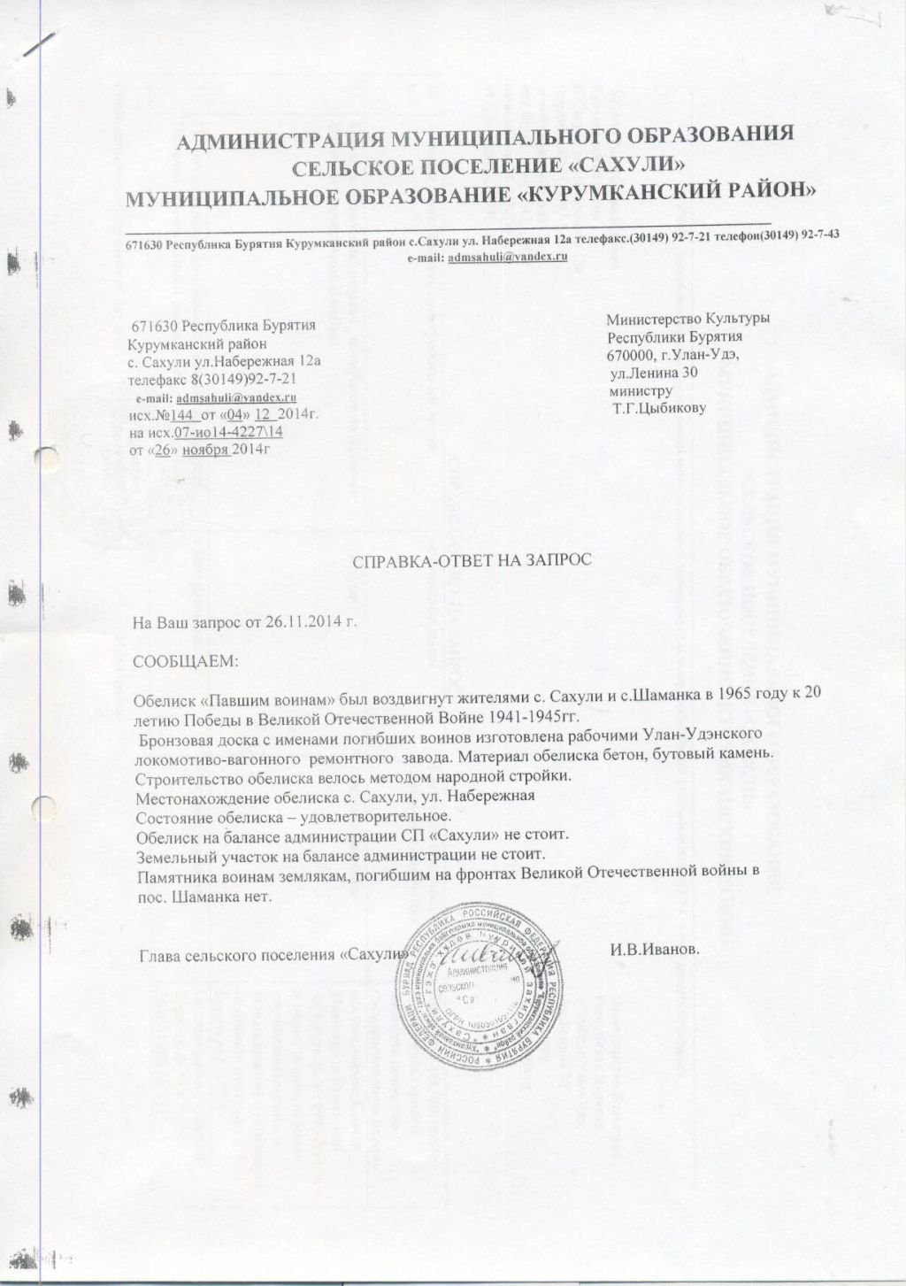 Памятник воинам-землякам, погибшим на фронтах Великой Отечественной войны