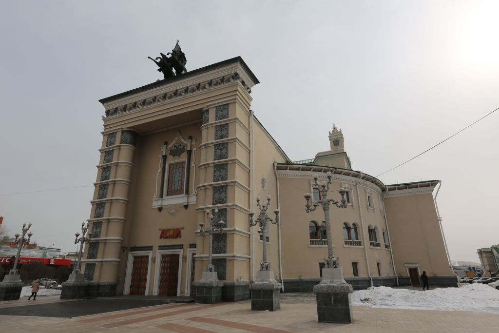 - градостроительное местоположение архитектурного ансамбля театра: историческая часть города Улан-Удэ;- объемно-пространственная композиция театра, состоящая из основного здания, аркады, террас с лестницами. Трехэтажное здание перекрыто над зрительным залом скатной шатровой с завершением круглым барабаном с многогранной арочной кровлей;- внутренняя планировка здания, состоящая из центрального ядра зрительного зала (фойе полукольцами окружают цилиндрический объем зрительного зала, на 1,2 и 3 этажах и примыкают к двум лестницам восточного и западного фасадов). Партер, переходящий в амфитеатр до уровня фойе второго этажа, завершающийся кольцом ложе, круговой балкон третьего этажа. Отдельно стоящий объем аркады, перекрытой двускатной кровлей с примыкающимися 2-мя симметрично расположенными террасами;- строительные конструкции и материал: несущие конструкции - монолитный железобетон. Наружные стены - кирпичные, оштукатуренные, окрашенные. Цоколь — отделка каменными плитами серого цвета с разбивкой на русты;- архитектурно-художественное оформление фасадов здания: местоположение, конфигурация, размеры, пропорции, материал: завершение декоративной стенки на кровле сценической коробки «Башенка»; бронзовая скульптурная композиция над порталом главного входа; профилированный декоративный пояс по фасадам здания и аркаде; лепной декор по фасадам здания; обрамление окон и главного входного узла театра; барельеф над главным входом; ажурный растительный орнамент обрамления окон главного входа; витражи; дверь главного входа, а также деревянные двери по фасадам здания, украшенные сложным лепным обрамлением; кронштейны карниза портала главного входа и карниза кровли; каменный орнаментированный пояс по периметру фасада и лепной декор кессона карниза кровли; сам лепной карниз по периметру здания; рустовка из каменных плиток; каменные крыльца и их перила; балясины; тумбы; балясины с тетивами балюстрады балконов, деревянные двери, лепной антаблемент колонн, каменные тумбы балюстрады;- картуши на пилонах аркады, лепной антаблемент колонны аркад и над калитками входа каменные балясины балюстрады террасы, крыши и аркады. Архитектурное оформление интерьеров:- лепные гипсовые картуши и профили, а также деревянные двери с латунными замками и деревянными ручками с металлическими вставками кассового вестибюля;- лепные гипсовые кронштейны карниза, профили, гипсовый декор обрамления окон и дверей, каменные колонны с каннелюрами с капителями орнаментированными лепниной, каменные полы, деревянные щиты ограждения отопительных приборов, двери, а также арочные и прямоугольные окна кольцевого фойе театра, буфетов;- декоративные кронштейны; карнизы; потолочные розетки и орнамент; лепной декор окон; лепные профили балюстрады; картуши и орнамент по стенам; каменная балюстрада; граненые колонны с орнаментированными базами и многофигурный горельеф с постаментом, а также деревянные щиты ограждения отопительных приборов; деревянные двери; двуарочные, арочные и круглые окна; орнаментальный витраж окна главного входа; роспись плафона (темперная живопись по холсту)- многофигурная композиция людей в национальной одежде; национальный бурятский орнамент двусветного и кольцевого фойе 2го этажа;- каменное ограждение амфитеатра; ограждение балкон