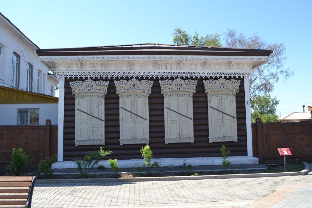 1. Местоположение объекта: На южной стороне ул. Линховоина (бывш. Соборная) и фиксирует красную линию улицы.2. Объемно-планировочное решение 2.1. Этажность. Одноэтажное2.2. Планировочное решение: плане прямоугольный. Вытянут вглубь усадьбы. С южной стороны пристрой по линии восточного фасада.Конфигурация кровли.Основной объем - вальмовая.4. Строительные конструкции и материал. Наружные и несущие внутренние стены. Материал: дерево.5. Декоративные элементы фасадов:5.1. Оконные проемы. Основной объем и пристрой. Лучковые.5.2. Карниз. По периметру основного объема и пристроя. Дощатый, подшивной большого выноса со сквозным подзором.5.3. Фриз. По периметру основного объема и пристроя. Выполнен из гладких досок уложенных вертикально, отделен от карниза профилированным пояском. По низу профилированный пояс и лента высокого сквозного подзора симметричного сложного рисунка. По полю фриза декоративные круглые элементы сквозной резьбы. Через один круглый элемент фриза, в оси элемента, устроены кронштейны, фигурные, сквозного сложного рисунка.5.4. Углы дома. Все углы основного объема и пристроя. Стыки бревен зашиты гладкими досками5.5. Наличник тип 1. Северный фасад. Объемную лобань, выполненную из доски пропильного ажурного рисунка венчает профилированный карниз с рядом зубчиков, над ним симметричные элементы пропильного ажурного рисунка. Карниз по центру изогнут дугой. Лобань по осям боковых частей наличника имеет кронштейны с накладной пропильной резьбой прямоугольной и полукруглой формы. По низу лобани над оконным блоком ряд пропильной резьбы симметричного растительного рисунка. Нижняя часть наличника имеет профилированный карниз, накладной элемент из пропильной ажурной резьбы симметричного рисунка и объемные квадратные элементы.5.6. Наличник тип. Восточный и западный фасады основного объема. Западный фасад пристрояЛобань венчает профилированный карниз большого выноса с подзором. По бокам фигурные кронштейны с наложенным элементом с пропильной резьбой. По полю лобани накладная пропильная резьба растительного рисунка трапециевидной и круглой формы. Свесы фигурные профилированные. Нижняя часть наличника декорирована объёмными накладными элементами и поясками.5.7. Наличник тип. Южный фасад пристроя. Лобань венчает профилированный карниз над которым устроен двускатный элемент, имитирующий фронтон. Нижняя часть наличника фигурных симметричных очертаний. Свесы фигурные профилированные.5.8. Ставни. По периметру основного объема пристрой. Двустворчатые трехчастные филенчатые. Верх повторяет лучковое завершение оконных проемов.
