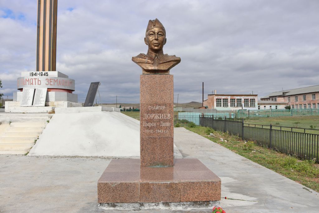 1. Местоположение.2. Бюст Ц.-Д. Доржиева на постаменте.