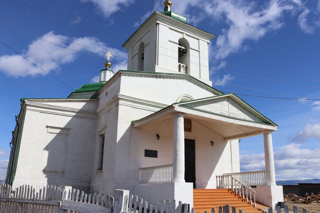 1.Местоположение объекта: Баргузинский район, с.Баргузин, на южной стороне ул. Красноармейская, недалеко от устья реки Банная2.Объемно-планировочное решениеСостоит из разновеликих объемов:- паперть;- двухярусный, прямоугольный в плане объем колокольни, на котором был ярус звона. Объем колокольни вписан в основной объем;- основной объем (в котором заключены алтарь, храм с двумя приделами, притвор (трапезная)), одноэтажный, в плане прямоугольный, близкий квадрату с двумя внутренними продольными стенами, отделяющими боковые пределы от храма3.Строительные конструкции и материалНаружные и внутренние несущие стены. Материал: кирпич, оштукатуренный4.Декоративные элементы фасадов:4.1Карниз, его местоположение, конфигурация, материал и декорМестоположение: по периметру основного объема и первого яруса объема колокольни.Конфигурация: профилированный небольшого выноса. Материал: кирпич, оштукатуренный4.2Фризовый поясок, его местоположение, конфигурация и материал Местоположение: по периметру основного объема и первого яруса объема колокольни.Конфигурация: фризовая часть отделена профилированным пояском. Поясок раскрепован лопатками объема колокольни. Материал: кирпич, оштукатуренный4.3Ряд кронштейнов карниза, его местоположение, конфигурация, материал Местоположение: по периметру второго яруса колокольни.Конфигурация: небольшие фигурные имитирующие модульоны. Материал: кирпич, оштукатуренный4.4Декор фасадов, его местоположение, конфигурация и материалКонфигурация и местоположение: 1) гладкие лопатки на западном фасаде основного объема и первого яруса объема колокольни; 2) ниши прямоугольные на всю высоту северного, восточного и южного фасадов основного объема, с шагом, имитирующим лопатки; 3) подоконные прямоугольные ниши по северному, восточному и южному фасадам основного объема; 4) в высоких нишах (п.2) с чередованием через одну устроены узкие ниши обрамляющие оконные проемы: по южному и северному фасадам – арочные полуциркульные, по восточному фасаду – прямоугольные (ниша группы оконных проемов алтаря широкая); 5) широкий гладкий пояс над цоколем по периметру двух объемов. Материал: кирпич, оштукатуренный4.5Цоколь, его местоположение, конфигурация и материалМестоположение: по периметру основного объема и первого яруса объема колокольни. Конфигурация: высокий. Материал: кирпич, оштукатуренный4.6Оконные проемы, их местоположение, конфигурация, количествоМестоположение: по периметру основного объема и первого яруса объема колокольни.Конфигурация: прямоугольные. Количество: 15 4.7Группа оконных проемов алтаря, её местоположение и конфигурацияМестоположение: восточный фасад основного объема.Конфигурация: три оконных проема, центральный оконный проем идентичен оконным проемам, два боковых проема более узкие4.8Ниша, её местоположение и конфигурацияМестоположение: северная часть западного фасада основного объема. Конфигурация: прямоугольная, имитирующая оконный проем4.9Сандрики 1 типа, их местоположение, конфигурация, количество и материалМестоположение: по периметру основного объема и первого яруса объема колокольни.Конфигурация: профилированный прямой, на гладких кронштейнах. Количество: 12. Материал: кирпич, оштукатуренный4.10Сандрики 2 типа, их местоположение, конфигурация, количество и материалМестоположение: по пери