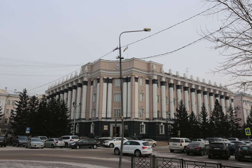 1. Местоположение: Республика Бурятия, г. Улан-Удэ, ул. Сухэ-Батора, 9,в северо-западной части плошали Советов, формирует историческую красную линию застройки площади.2.Объемно - планировочное решение 2.1. Этажность: Основное здание - четырехэтажное. Пристрой зала заседаний — двусветный, малого зала заседаний одноэтажный. -2.2. Планировочное решение: Основное здание Г-образное в плане состоит из углового объема с фигурно скошенным(вогнутым) юго-западнымуглом и двух крыльев — северного и восточного. К каждому крылу под прямым углом примыкают пристрои: восточное крыло — двусветный пристрой зала. заседаний; северное крыло двухэтажный пристроймалого зала заседаний и столовой. Основное здание с пристроями зала заседаний и малого зала заседаний образует четурыхугольник с внутренним двором.3. Конфигурация кровли: сложная в плане с вальмами и ендовой.4. Строительные конструкции и материал: Наружные стены, несущие внутренние стены. Материал: кирпич, оштукатуренный5. Декоративные элементы фасадов.6. Элементы интерьера.