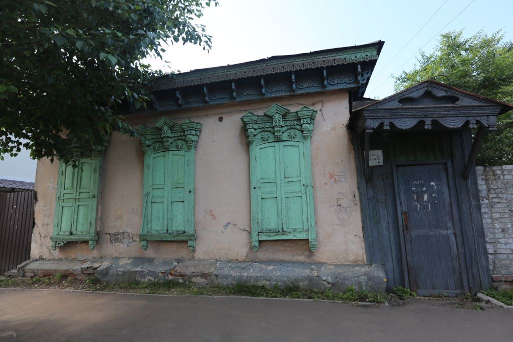 1.Местоположение: Южная сторона ул. Свердлова (бывш. Сенная) между ул. Ленина (бывш. Большая Николаевская) и Коммунистическая (бывш. Лосевская). Дом фиксирует историческую красную линию.2.Объемно-планировочное решение здания:2.1. Этажность: Одноэтажный2.2.Планировочное решение: К основному прямоугольному в плане объему с запада пристроена галерея на всю длину западного фасада. С юга поздний пристрой.3.Конфигурация кровли и материал: Основной объем вальмовая, пристрой двускатная с вальмой с юга. Крыши основного объема и пристроя объединены. Галерея односкатная. Кровельный материал - металл.4.Строительные конструкции и материал: наружные и несущие внутренние стены. Материал: дерево.5.Декоративные элементы фасадов:5.1 Карниз его местоположение, конфигурация, декор и материал. Местоположение по периметру основного объема. Профилированный большого выноса. Декор: подзор, дентикульная лента, фигурные кронштейны пропильной резьбы ажурного рисунка. Карниз южного фасада без декора. Материал: дерево5.2Фриз его местоположение, конфигурация, декор и материал. Местоположение по периметру основного объема. Фриз выступает над плоскостью фасада. Декор: лента четырехскатных элементов, накладные элементы пропильной резьбы ажурного рисунка между кронштейнами карниза. Фриз южного фасада без декора. Материал: дерево.5.3Оконные проемы их местоположение, конфигурация. Местоположение - основной объем: северный, восточный и южный фасады. С лучковым завершением. Один проем восточного фасада парный. Кол-во 6 (фасады: северный - 3, южный - 2, восточный -2(1 парный)5.4Наличники их местоположение, конфигурация, декор и материал. Местоположение - основной объем: северный, южный и восточный фасады. Наличник четырехсторонний, верх повторяет конфигурацию оконных проемов. 1.Декор лобани: а) карниз большого выноса, профилированный с подзором симметричного рисунка. Карниз раскрепован боковыми накладными элементами и разорван центральным элементом; б)накладная доска, с вогнутыми дугами, между накладными элементами, декорированными остроконечными зубчиками; в) три объемных накладных элемента - в осях боковых частей наличника и в центре. Накладные элементы в осях боковых частей наличника декорированы: объемной резьбой, фигурными свесами, «фронтончиками»-выше уровня карниза лобани. Накладной элемент в центре лобани декорирован: подзором пропильной резьбы, круглым солярным элементом объемной резьбы, фигурно вырезанным по лицевой стороне свесом имитирующим кронштейн, двускатной деталью идентичной карнизу лобани-выше уровня карниза лобани в оси элемента. г)круглые элементы объемной резьбы, кол-во 2. По бокам лобани все декоративные элементы лицевой стороны лобани повторены. 2.Декор нижней части наличника: профилированный пояс с лентой квадратов. 3. Свесы фигурные. На парном оконном проеме наличник двойной. Материал: дерево. Кол-во 5 (фасады: северный - 3, восточный - 2)5.5 Ставни их местоположение, конфигурация, декор и материал. Местоположение – Наличники Верх ставен повторяет конфигурацию оконных проемов. Ставни двустворчатые трехчастные, филенчатые. Материал: дерево. Кол-во 5 (фасады: северный - 3, восточный - 2)5.6 Галерея её местоположение, конфигурация, декор и материал. Местоположение - основной объем: Западный фасад. В плане прямоугольная. Декор: 1. профилированный карниз, с 