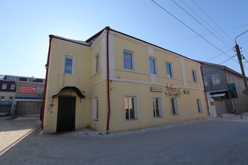 1. Местоположение: на южной стороне ул. Кирова.2. Двухэтажное каменное оштукатуренное здание с небольшим объемом с востока. По северному и части восточного фасада широкий междуэтажный пояс, лопатки по второму этажу и узкий подоконный пояс второго этажа. Оконные проемы прямоугольные.