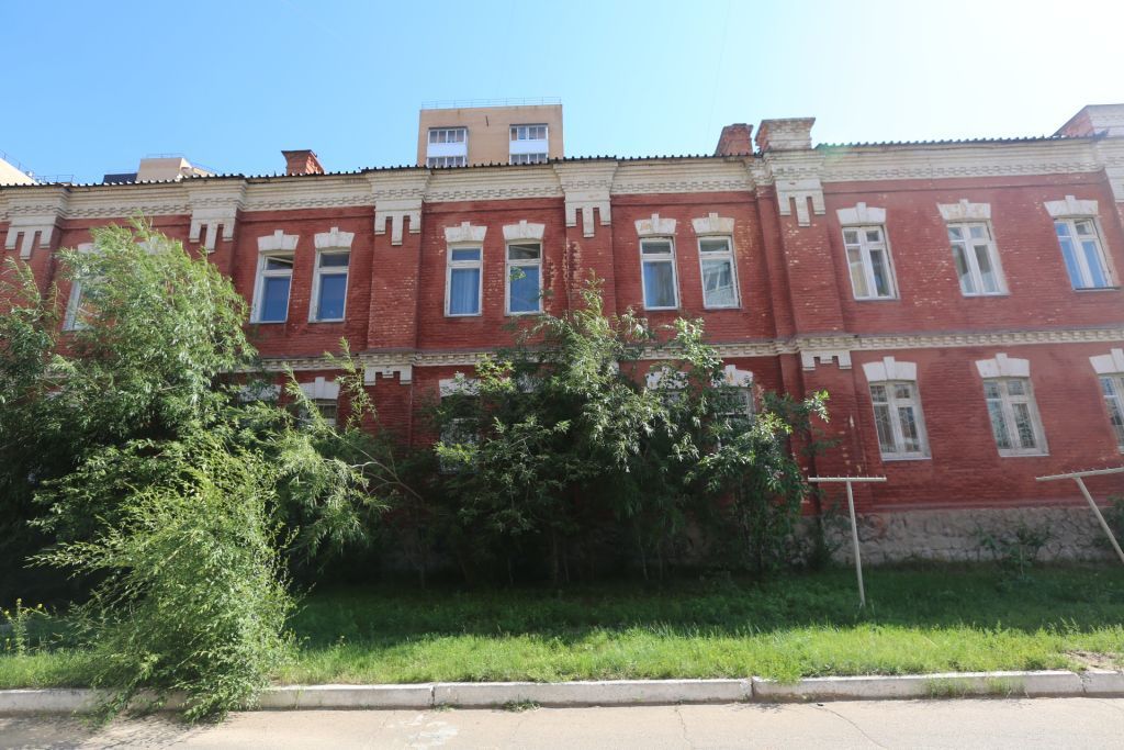 1. Местоположение объекта. Здание расположено на значительном удалении от красной линии ул. Боевая2. Объемно-планировочное решение здания. Этажность: двухэтажное. Планировочное решение: прямоугольное в плане, вытянуто с востока на запад 3. Конфигурация кровли: Двускатная, с фронтонами по торцам 4. Строительные конструкции и материал Наружные и внутренние несущие стены. Материал: кирпич, не оштукатурен5. Декоративные элементы фасадов зданий5.1. Карниз, его местоположение, конфигурация и материал. Местоположение: по периметру здания под свесом кровли, фронтоны. Конфигурация: профилированный, с двойной лентой дентикул. Карниз раскрепован лопатками. Материал: кирпич неоштукатуренный5.2. Фризовый пояс, его местоположение, конфигурация и материал Местоположение: по периметру здания.Конфигурация: плоскость фриза отделена от плоскости фасада поясом округлым в сечении. Фризовый пояс раскрепован лопатками. Материал: кирпич неоштукатуренный5.3. Междуэтажный пояс, его местоположение, конфигурация и материал Местоположение: по периметру здания.Конфигурация: профилированный, с лентой двухступенчатых дентикул. Пояс раскрепован лопатками. Материал: кирпич неоштукатуренный5.4. Лопатки, их местоположение, конфигурация, декор, количество и материал Местоположение: по периметру здания.Конфигурация: гладкие лопатки. Декор: под фризовым и междуэтажным поясами декорированы тремя двухступенчатыми свесами: 1. Под фризовым поясом средний свес длиннее боковых; 2. Под междуэтажным поясом средний свес короче боковых. Количество: 38 (южный фасад – 16, торцевые фасады – по 2, северный – 18). Материал: кирпич неоштукатуренный5.5. Ризалиты, их местоположение, конфигурация, материал и количество Местоположение: по центру северного и южного фасадов. Конфигурация: южный фасад - трехосный ризалит. Северный фасад – четырехосный ризалит. Материал: кирпич неоштукатуренный. Количество: 25.6.Столбики, их местоположение, конфигурация, декор, количество и материал Местоположение: венчают лопатки на углах здания и в местах выступа несущих стен выше уровня кровли. Конфигурация: четырехгранные столбики с четырехскатным завершением. Декор: профилированный карниз с двумя лентами дентикул; фризовый поясок, округлый в сечении. Количество: 14 (южный фасад - 6, северный - 8). Материал: кирпич неоштукатуренный