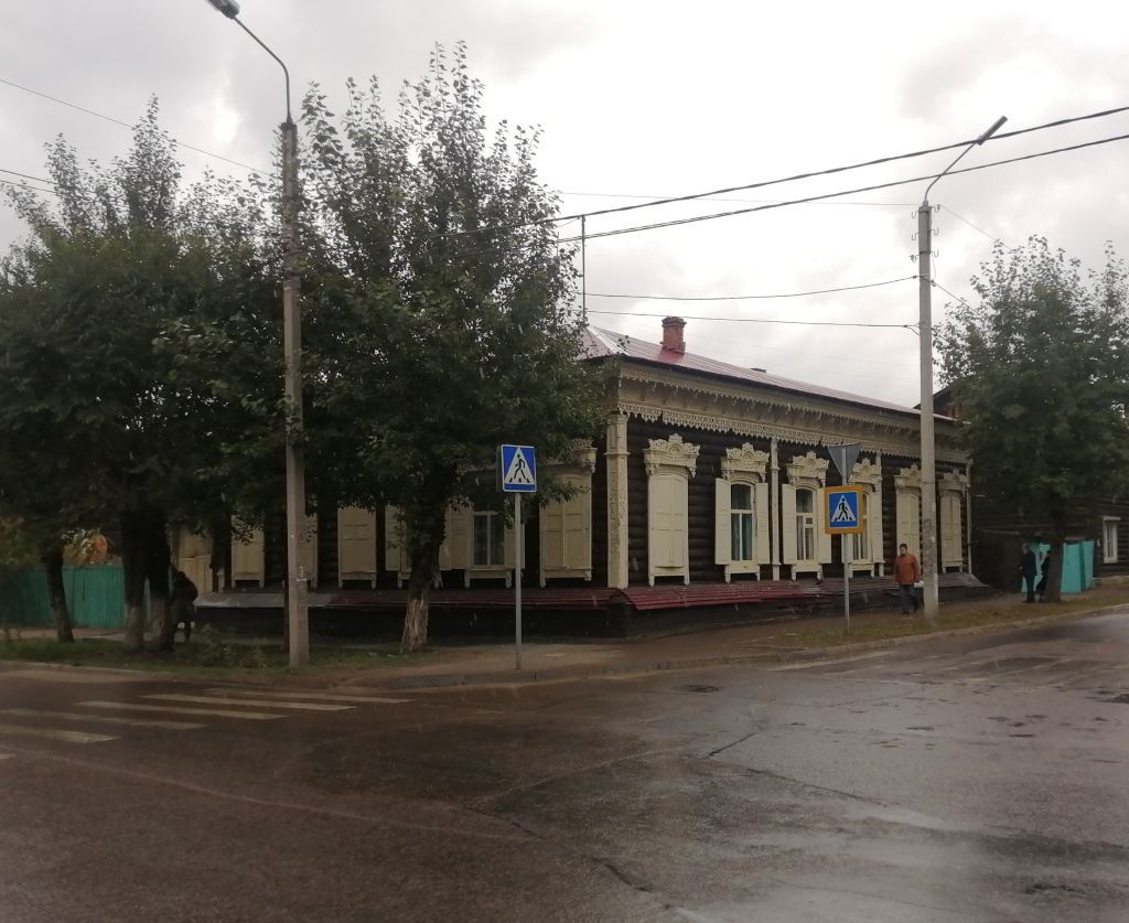 1. Местоположение:На северо-восточном углу пересечения улиц Смолина (бывш. Большая Набережная) и Свердлова (бывш. Сенная). Формирует исторические красные линии улиц.2. Объемно-планировочное решение дома2.1. Этажность: Одноэтажный2.2. Планировочное решение: Г-образный в плане, западная часть-вытянутая вдоль ул. Смолина - парадная, шире восточной части, вытянутой вдоль улицы Свердлова. Со стороны северного дворового фасада пристрой. Со стороны северного торцевого фасада галерея.3. Конфигурация кровли и материалСложная, Западная часть - вальмовая, восточная часть с вальмой с востока и пониженным коньком. Галерея и пристрой под односкатными кровлями. Материал: металл4. Строительные конструкции и материалнаружные стены, несущие внутренние стены. Материал: дерево5. Декоративные элементы фасадов:5.1. Карниз его местоположение, конфигурация, декор, материал.Местоположение: по периметру дома Подшивной профилированный карниз большого выноса. Декор: 1. Лента двухступенчатых элементов 2. Подзор пропильной резьбы ажурного рисунка. 3. Фигурные кронштейны пропильной резьбы ажурного рисунка. Материал: дерево.5.2. Фриз его местоположение, конфигурация, декор, материал.Местоположение: по периметру дома В виде накладных досок, уложенных вертикально. Декор: 1. Высокий подзор пропильной резьбы ажурного рисунка. 2. Профилированный поясок с лентой зубчиков по низу. 3. «Солярные» элементы пропильной резьбы, между кронштейнами. Материал: дерево.5.3. Лопатки, их местоположение, конфигурация, декор, материал.Местоположение: южный, западный и восточный торцевой фасады дома, восточный и северный фасады галереи. Из накладной доски декорированной профилированным багетом, делящим лопатки на три части, имитируя пилястры. Между уровнями широкий профилированный пояс. Поле средней части декорировано накладной фигурной деталью пропильной резьбы. Верхняя и нижняя части четырехскатной объемной деталью. Кол-во: 12 (дом: южный - 4, западный - 2, восточный торцевой - 2, галерея: восточный - 2, северный - 2) Материал: дерево5.1 Оконные проемы их местоположение, конфигурация, количество и оконные заполнения (расстекловочная схема, материал и конфигурация).Местоположение: Южный, западный и восточный дворовый фасады. Конфигурация оконных проемов: с лучковым завершением. Оконные заполнения: конфигурация - с лучковым завершением, основа расстекловочной схемы - трёхстекольная. Кол-во: 14 (южный - 6, западный - 6, восточный дворовый - 2).5.2 Наличники их местоположение, конфигурация, декор, материал. Местоположение: Южный, западный и восточный дворовый фасады. Четырехсторонние. 1) Декор лобани: 1. Профилированный карниз, по центру изогнутый полукругом, с двумя лентами резного орнамента. 2. Вертикальные элементы, раскреповывающие карниз. Вертикальные элементы в средней части декорированы фигурными деталями пропильной резьбы, по низу профилированным пояском. Вертикальные элементы имеют продолжение в виде фигурных свесов с пропильной резьбой. 3. Гладкая фигурная доска с симметричным пропильным узором. 4. Гребень фигурных очертаний пропильной резьбы ажурного симметричного рисунка. 5. Лента вертикальных фигурных элементов с пропильной резьбой и накладными фигурными деталями пропильной резьбы, соединенных округлым пояском с насечками. 6. Объемные пирамидальные элементы в боковых частях лобани. 7. Фи