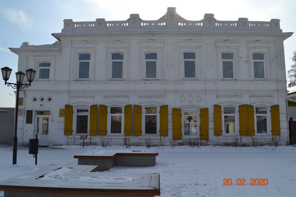 1. Местоположение: На южной стороне ул. Линховоина (бывш. Соборная) и фиксирует историческую красную линию улицы главным северным фасадом2. Объемно-планировочное решение здания: Этажность. Двухэтажное.Планировочное решение: Здание в плане прямоугольное, близкое к квадрату. С восточной стороны по линии главного северного фасада – объем фойе, двухэтажный, прямоугольный в плане, протяженностью в половину восточного фасада основного объема. В западной части южного дворового фасада, по линии западного фасада основного объема – двухэтажный дворовый пристрой, прямоугольный в плане.3. Конфигурация кровли: Вальмовая.Парапет основного объема его местоположение, конфигурация, пропорции, размеры, декор и материал. Парапет с имитацией столбиков. Столбики и ограждения декорированы сквозными элементами. Столбики имеют пояс округлый в сечении. По основанию парапета прямоугольные ниши. Центральные три столбика выше боковых, и имеют боковые дугообразные элементы, со сквозным элементами. Материал: кирпич, известковый раствор.Парапет объема фойе его местоположение, конфигурация, пропорции, размеры, декор и материал. Невысокий парапет между двумя столбиками с поясом округлым в сечении, декорированный прямоугольными нишами. Материал: кирпич,известковый раствор.Слуховое окно его местоположение, конфигурация, пропорции, размеры, декор и материал. На южном скате кровли под округлой кровлей. Декорирован профилированным деревянным карнизом. Полукруглый фронтон, выполненный из дерева, декорирован объемными элементами – круглыми и ромбовидными. В поле тимпана полукруглое сквозное отверстие.4. Строительные конструкции и материал: Кирпичные наружные стены дома Кирпичные несущие внутренние стены.5. Декоративные элементы фасадов. 5.1 Оконные проемы главного северного фасада основного объема их местоположение, конфигурация, расстекловочная схема, ширина переплетов и цветовое решение оконных заполнений. Местоположение: Основной объем главный северный фасад. Описание и количество: Высокие оконные проемы с лучковым завершением. Расстекловочная схема –семистекольная, двустворчатая с глухой остекленной фрамугой. общее кол-во – 11.5.2 Оконный проем главного северного фасада объема фойе его местоположение, конфигурация, расстекловочная схема, цветовое решение и ширина переплета оконного заполнения. Местоположение: Главный северный фасад. объем фойе. 2 этаж. Описание и количество: Невысокий, почти вписан в квадрат, с лучковым завершением. Расстекловочная схема –трехстекольная, двустворчатая с глухой остекленной фрамугой. Кол-во 15.3 Оконные проемы западного фасада 2 этажа основного объема их местоположение, конфигурация. Местоположение: Западный фасад основного объема 2 этаж. Описание и количество: 1. Высокие оконные проемы с лучковым завершением. Кол-во 5. 2. Высокий узкий оконный проем с лучковым завершением. Кол-во 1. Общее кол-во 65.4 Оконные проемы южного фасада основного объема, восточного и западного фасадов дворового пристроя. Местоположение: Южный фасад основного объема, западный и восточный фасады дворового пристроя. Описание и количество: С лучковым завершением. Кол-во 8 ( осн. объем – 6, притрой – 2)5.5 Проем главного северного фасада основного объема. Местоположение: Главный северный фасад основного объема 1 этаж, 3 й с запада. Описание и коли