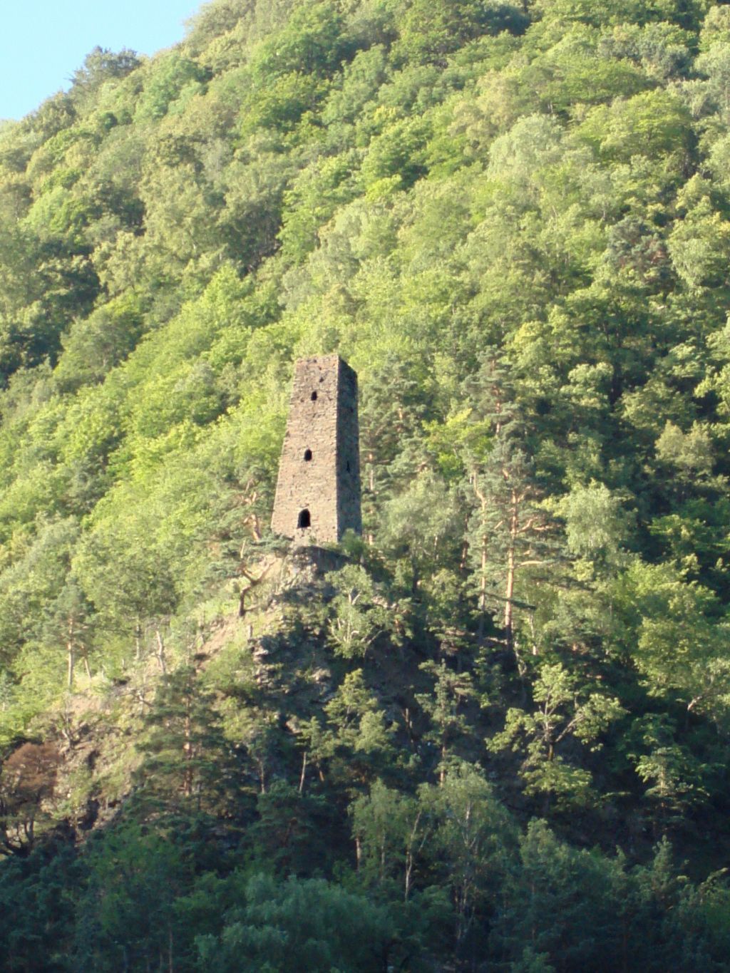 -композиционное решение и архитектурно-художественное оформление: месторасположение башни - построена на высоком, крутом каменном утесе на правом берегу реки Майстойн-эрк, притока Чанти-Аргуна;-объемно-пространственная композиция: прямоугольная в плане башня, обращенная фасадом на запад;-материал капитальных стен: камень-песчаник; материал покрытия - сланцевые плиты;-техника кладки: разноразмерные, обработанные камни на известковом растворе;-культурный слой, в пределах границ территории башни.