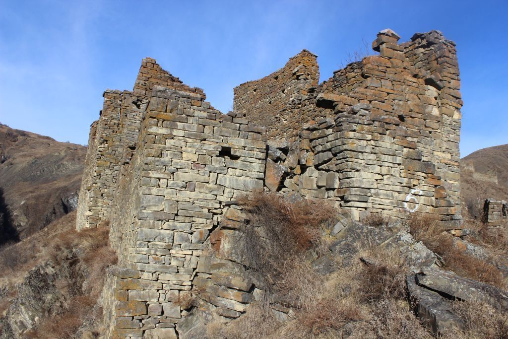 - композиционное решение и архитектурно - художественное оформление: месторасположение башни; - объемно-пространственная композиция: прямоугольная в плане башня;- материал капитальных стен: камень-песчаник;- материал покрытия: сланцевые плиты, камень-песчаник;- интерьер башни: замковые - угловые камни; расширение проемов изнутри в виде стрельчатой арки; - размеры, форма и расположение окон и дверей: на восточной стене организован входной проем на 2-й этаж, толщина стен – 0,63 м, площадь башни - 14,34 х 5,0 м;- техника кладки: разноразмерные, обработанные камни на глиняно-известковом растворе;- культурный слой, в пределах границ территории башни.