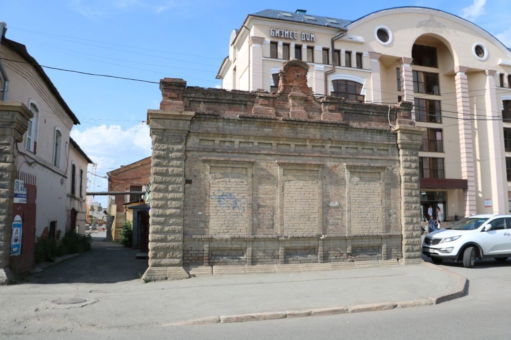 1.Объемно-пространственное решение расположения здания памятника в структуре города 1.1.Градостроительный прием расположения здания-памятника: нежилого строения здание лавки расположено по красной линии ул. Труда в ряду линейной застройки через проездные ворота от объекта культурного наследия регионального значения «Городская дума» 2.Функциональное назначение здания-памятника существующее назначение здания-памятника: здание для размещения учреждений 3.Объемно-планировочное решение здания-памятника одноэтажное здание, выполненное из кирпича, развито вглубь квартала 4.Общее композиционно-планировочное решение здания-памятникаобщее планировочное решение здания лавки образовано кирпичными несущими стенами с учетом исторических оконных проемов южного фасада лучковой формы5.Основные конструктивные решения здания-памятника одноэтажное кирпичное здание6.Общее архитектурное решение фасадов и их элементов, крыши здания-памятника 6.1.Общее архитектурное решение южного фасада угловые пилястры с облицовкой гранитным рустом с базами профилированными тягами, капителями с упрощенным вариантом дорического ордера, завершающиеся парапетными столбиками крыши с одиночной филенкой на лицевых частях, профилированным завершением;профилированные тяги нижней грани фасада;наличники оконных проемов, объединенные с лаконичными сандриками, формирующими нишки сложной конфигурации, с декором подоконным карнизом, пилястрами, продолжающими оси наличников оконных проемов, фланкирующими прямоугольные ниши с фасками в подоконном пространстве;антаблемент в створе пилястр: архитрав, выполненный в один кирпич, фриз с часто расположенными прямоугольными нишками, венчающий карниз;аттик сложной конфигурации, члененный на три секции парапетными столбиками, отделяющими прямоугольные боковые фрагменты аттика от центрального в виде замочной скважины; декор аттика: боковые фрагменты с прямоугольными ступенчатыми нишами, центральная часть с пилястрой в центре и круглым элементом декора, декором внешней грани тычковым рядом кирпича, профилированным карнизом полукруглой центральной части с плечиками