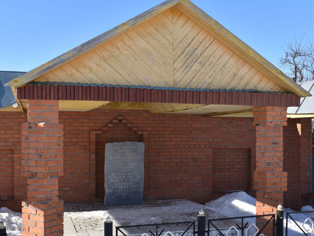 Памятный камень, установленный на месте дома, где родился поэт (М. Сеспель)