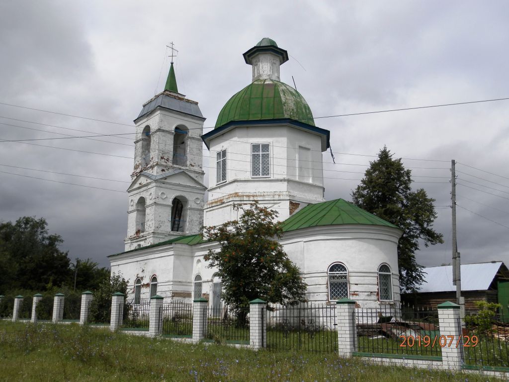 1. Доминирующее местоположение объекта культурного наследия в центральной части села, силуэтные характеристики, ценные точки видового раскрытия, беспрепятственное визуальное восприятие объекта культурного наследия в сложившейся среде.2. Объемно-пространственная композиция объекта культурного наследия, состоящая из:А) четверика, завершающегося высоким световым восьмериком с куполом и небольшой главкой на граненом барабане; на граненом барабане;Б) полукруглой алтарной апсиды - с восточной стороны, прямоугольной в плане трапезной - с западной стороны, завершающейся двускатной крышей;В) объема трехъярусной колокольни, состоящей из четвериков и завершающейся шпилем.3. Конфигурация и конструкция крыши объекта культурного наследия, в том числе: двускатная крыша первого этажа, материал отделки и характер покрытия двускатной крыши (окрашенное листовое железо со стоячим фальцем), купол с маленькой луковичной главкой на маленьком граненном барабане с юбкой, форма креста; материал отделки и характер покрытия главки (металлическое «в шашечку» из окрашенного оцинкованного металла), четырехскатная крыша третьего яруса колокольни, шпилевое венчание колокольни, форма креста на шпиле колокольни; материал отделки и характер покрытия четырехскатной крыши третьего яруса колокольни (листовое железо со стоячим фальцем); материал отделки и характер покрытия купола и шпиля колокольни (из оцинкованного металла с окраской).4. Архитектурно-художественное оформление фасадов объекта культурного наследия: широкий ступенчатый карниз вдоль первого этажа; горизонтальная рустовка колокольни и алтарной апсиды в уровне первого этажа.5. Филенки, украшающие восьмерик; прямоугольные оконные проемы восьмерика, украшенные ленточными наличниками с замковыми камнями.6. Круглые ниши, акцентирующие окна четверика, и фланкирующие проемы второго яруса колокольни; пояски; лопатки; арочные оконные проемы, подчеркнутые прямыми подоконными карнизами.7. Ярусы звона колокольни, прорезанные высокими арочными проемами; второй ярус, увенчанный фронтонами.8. Местоположение, размер дверных проемов, в том числе: главный вход с западной стороны колокольни — арочный дверной проем; два арочных дверных проема на северном и южном фасадах основного объема четверика.9. Столярные заполнения оконных проемов: деревянные рамы, характер расстекловки, металлические оконные решетки.10. Пространственно-планировочная структура интерьеров объекта культурного наследия в пределах капитальных стен: бесстолпный храм с полукруглой алтарной апсидой, с прямоугольной в плане примыкающей трапезной и колокольней; цилиндрическое основание купола церкви, опирающееся на парус; помещения трапезной с сомкнутым сводом.11. Местоположение, конструкция внутренней кирпичной лестницы колокольни.