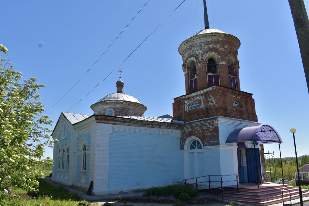 1. Местоположение объекта культурного наследия в сложившейся структуре села, его градостроительные характеристики в структуре застройки, роль как доминанты сельского поселения, включая: силуэтные характеристики, ценные точки видового раскрытия, беспрепятственное визуальное восприятие объекта культурного наследия в сложившейся среде.2. Объемно-пространственная композиция объекта культурного наследия по типу «корабля», включающая: основной четверик храма с крыльцами с южной и северной сторон, венчающийся круглым световым барабаном со сферическим куполом и главкой, установленной на маленький глухой барабан; полукруглую в плане алтарную апсиду; трехъярусную колокольню, покрытую сферическим куполом со шпилем; трапезную с южным и северным приделами с полукруглыми алтарными апсидами с главками; высотные отметки по карнизам барабанов глав, подкрестовым яблокам, крестам, венчающим карнизам.3. Углы основного четверика храма северного и южного фасадов отмечены широкими лопатками, несущими полуфронтон.4. Полуциркульный трехчастный оконный проем в обрамлении профилированного кирпичного наличника с замковым камнем, установленным на подоконном карнизе с консольками в тимпане полуфронтона.5. Круглый световой барабан четверика храма с широким профилированным кирпичным венчающим карнизом, арочные оконные проемы с кирпичными перемычками.6. Глухой барабан с профилированным кирпичным цоколем и карнизом.7. Стены алтарной апсиды четверика храма завершаются профилированным кирпичным карнизом, членятся подоконным кирпичным пояском.8. Венчающий профилированный кирпичный карниз стен приделов.9. Ниши с зубчатым завершением.10. Ризалит, завершающийся щипцом.11. Арочный ложный оконный проем с подоконным карнизом с консольками, завершающийся килевидным профилированным архивольтом, установленным на полуколонны с капителями в тимпане щипца.12. Алтарные апсиды приделов с нишей с зубчатым завершением и профилированным кирпичным венчающим карнизом.13. Первый ярус колокольни со ступенчатым венчающим карнизом, арочным дверным проемом с западной стороны и спаренными прямоугольными оконными проемами с общей полуциркульной фрамугой с южной и северной сторон; второй ярус колокольни с нишами с лучковыми оконными проемами.14. Открытая аркада звонницы с прямоугольными в плане пилонами, на которые опираются арки с профилированным завершением; кирпичный ступенчатый венчающий карниз.15. Арочные оконные проемы приделов с апсидами, в том числе: арочные оконные проемы с плоским архивольтом с профилированным килевидным завершением, подоконный профилированный карниз с рядами поребриков.16. В ризалите — строенные арочные оконные проемы, оформленные аркатурой, состоящей из соединенных плоских архивольтов с профилированным килевидным завершением, с полуколоннами, установленные на профилированный подоконный карниз с рядами поребриков.17. Пространственно-планировочная структура объекта культурного наследия в пределах капитальных стен: купольный храм с апсидой, трапезной и колокольней с южным и северным приделами; широкие арочные проемы между помещениями; купол с барабаном установлен на парусах; помещения перекрыты системой лотковых сводов; система воздушных связей, распалубок и арок.18. Фрески, отдельные фрагменты фресок и фресковая роспись в