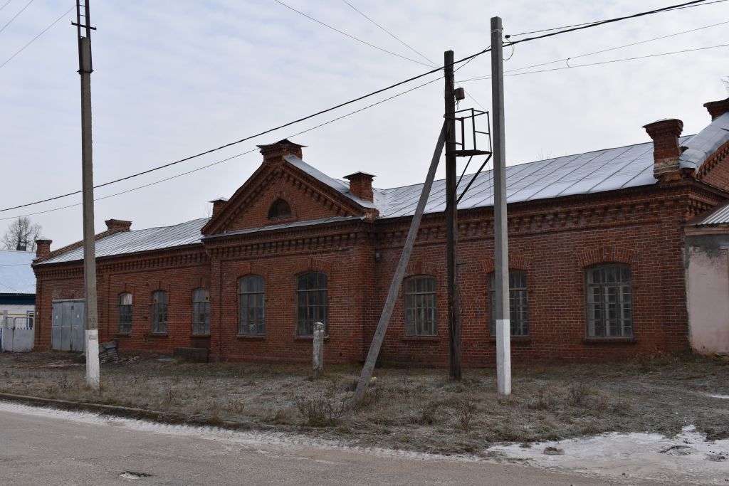 1. Градостроительные характеристики1.1. Здание расположено в центральной части города Мариинский Посад, ориентировано главным фасадом на улицу Советская.1.2. Особая градостроительная роль объекта культурного наследия заключается в формировании композиционного силуэта улицы Советская, панорам города, его культурного ландшафта.Визуальные связи памятника с другими строениями.2. Архитектурные и конструктивные характеристики объекта2.1. Объёмно-пространственная структура представляет собой Г-образное в плане одноэтажное здание с поздним деревянным пристроем со стороны северного фасада. Также с южной стороны к зданию примыкает гаражный ряд.Главный (западный) фасад решён в 8 оконных осей и дверным проёмом в северной части, в соотношении 1-3-2-3, считая с северной стороны.Боковой (северный) фасад решён в 3 оконные оси в соотношении 2-1, считая со стороны главного фасадаДворовый (восточный) фасад решён в 10 оконных осей в соотношении 2-3-2-3, начиная отсчёт со стороны северного фасада, на 5-ой оси располагается главный вход в здание. Южная сторона выступающей части здания с запада на восток решена в 6 оконный осей;Боковой (южный) фасад симметричный.2.2. Крыша: многощипцовая с элементами вальмовой.Кровельный материал – фальцевое железо.Высотные отметки по венчающему карнизу и верхней точке конька.2.3. Композиционное и архитектурно-художественное оформление фасадов, в том числе:- фронтон, обрамленный в карниз, состоящий из верхнего простого карниза с рядом зубцов и нижнего городчатого пояса, со слуховым окном арочной формы, декорированным кирпичным наличником и замковым камнем, также фронтон венчает аттик прямоугольной формы, обрамленный карнизом простого профиля с рядом зубцов, и по флангам фронтона расположены тумбы парапета. Аттик и тумбы парапета декорированы карнизом с рядом зубцов. Аналогичный фронтон декорирует остальные фасады;-венчающий профилированный карниз, состоящий из верхнего простого карниза с рядом зубцов и нижнего городчатого пояса; -лопатки, объединяющие 2 центральных оси главного фасада: 5-ую и 6-ую, лопатками объединены три оси по флангам здания, а именно: 2, 3, 4-ая, и аналогично: 7, 8, 9-ая. На северном фасаде лопатки объединяют 2 оконных проема под фронтоном. На дворовом фасаде лопатки декорируют углы здания; - окна главного фасада декорированы кирпичным сандриком лучковой формы с замковым камнем и кирпичным подоконным профилированным карнизом; - кованный козырек над главным входом в здание - металлической дверью лучковой формы.2.4. Местоположение, габариты, конфигурация и характер столярных заполнений оконных и дверных проёмов здания, в том числе:- деревянные двустворные окна со сложившимся рисунком переплетов:На главном фасаде 12-частные окна лучковой формы;На северном фасаде 12-частные окна лучковой формы (в том числе заложенные).На дворовом фасаде в основном 12-частные окна лучковой формы. Также имеются 16-частные окна лучковой формы: на северной части дворового фасада ближе к торцу и по другую сторону главного входа в здание от центральной части дворового фасада;На дворовом фасаде располагается и главный вход в здание, представляющий собой дверной проем лучковой формы с металлической двухстворчатой дверью2.5. Материал и характер отделки фасадных поверхностей: здание выполнено из красного полнотелого кирпича.2.6. Сложив