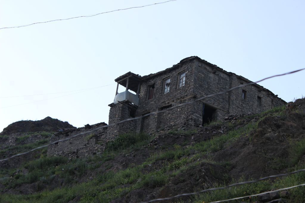 1. Месторасположение и градостроительные характеристики:- трехэтажный дом И.Мирзаева в селе Михрек; - конструкция дома с использованием поперечных контрофорсов на крутом рельефе.2. Объемно-пространственная композиция основного объема здания:- три поперечные подпорные каменные стены высотою более 7 метров; хозяйственные помещения в два этажа между этими стенами. Нижнее помещение - хлев для скота - с каменной наружной стеной. Верхнее - сарай для сена соединенный внутренней лестницей с жилым помещением.3. Композиция и архитектурно-художественное решение:- четыре окна, выходящие на главный фасад с наборными деревянными решетками; - фигурные деревянные обрамления в одиннадцати стенных нишах; - четыре столбика перекрытия с фигурными подбалками; - камин в центральной части стены жилого помещения, напротив входной двери; - входная дверь с оригинальной по форме деревянной коробкой.