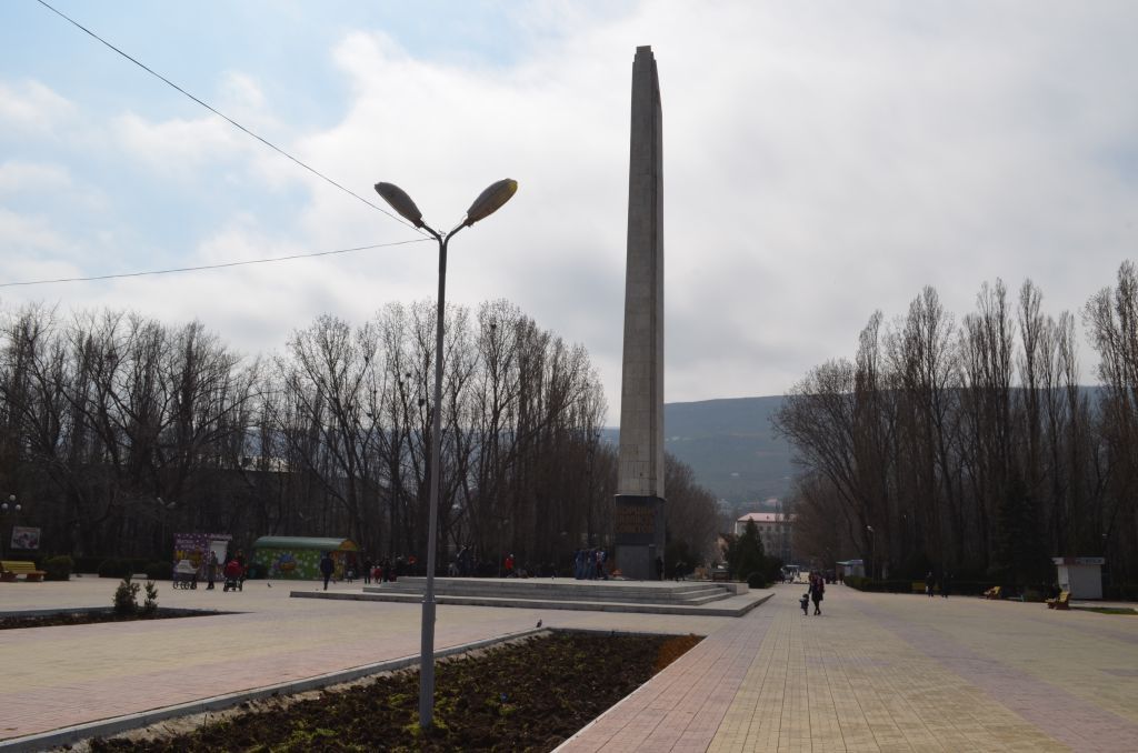 Градостроительные характеристики:- существующее местоположение объекта культурного наследия, при входе в парк им. 50 лет. образования СССР со стороны проспекта им. Имама Шамиля.Объемно-пространственная композииия:- четырехступенчатый прямоугольный пьедестал, над которым возвышается 30 м. стела прямоугольной формы у основания и сужающаяся к верху.Архитектурно-художественное оформление:- облицовка памятника полированным мрамором светлого цвета;- барельеф, выполненный из натурального камня темного цвета; - на барельефе профили красногвардейца и горца; - надпись «БОРЦАМ ЗА ВЛАСТЬ СОВЕТОВ» над и под которой имеется растительным орнамент бронзового цвета.Габариты: в соответствии с пунктом 6.4. проекта.