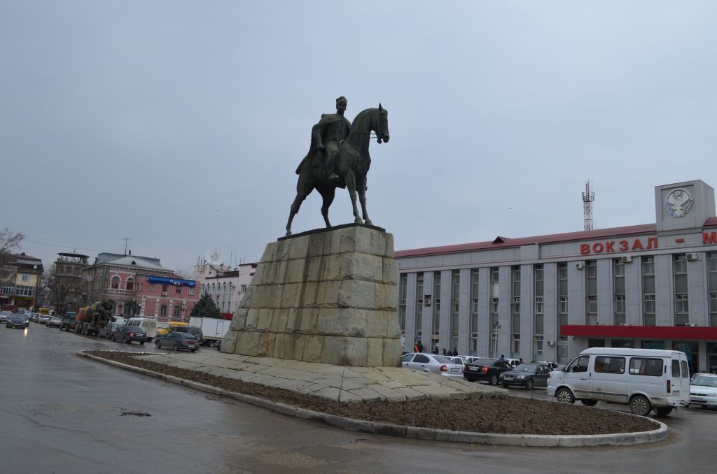 Градостроительные характеристики: привокзальная площадь города Махачкала.Объемно-пространственная композиция: в центре клумбы постамент, на котором возвышается всадник на коне.Архитектурно-художественное оформление: - бронзовая статуя Махача Дахадаева, восседающего на коне; - постамент, сложенный из блоков природного камня.Габариты: в соответствии с пунктом 6.4. проекта.