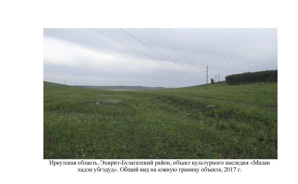 Предметом охраны объекта культурного наследия регионального значения – достопримечательного места «Малан хадэн убгэдуд» (место совершения религиозных обрядов), расположенного в Эхирит-Булагатском районе Иркутской области, в 3,5 км к северо-западу от села Булуса, на правом борту пади Опсе-Гол, по проселочной дороге Булуса - Гулзагай, площадью 10668 кв.м., являются:- часть земной поверхности в границах территории объекта с существующими формами рельефа и расположенными на территории искусственными сооружениями в виде каменных выкладок, очагов, кострищ и пр., которые несут в себе информацию об истории, культуре и быте коренного населения, исповедующего традиционный шаманизм западных бурят в период этнографической современности (XIX-XXI вв. н.э.).