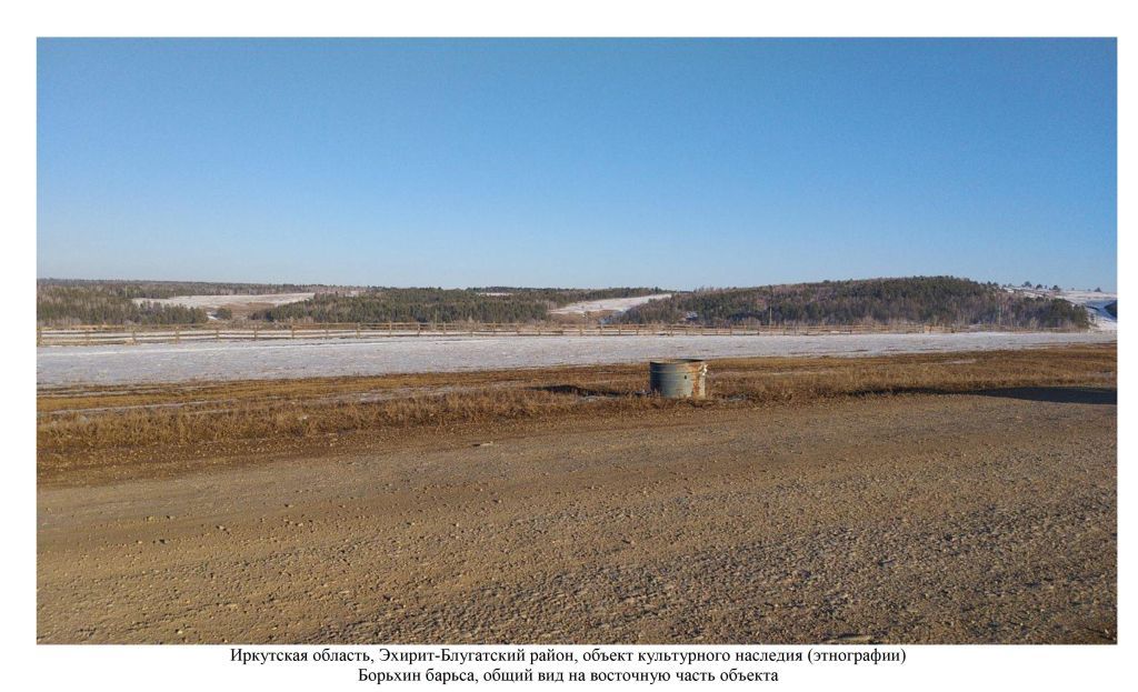 Предметом охраны объекта культурного наследия регионального значения – достопримечательного места «Борьхин барьса» (место совершения религиозных обрядов), расположенного в Эхирит-Булагатском районе Иркутской области, в 2,0 км на юго-восток от села Харазаргай, по автодороге Харазаргай – Нижняя Идыга, площадью 29995 кв.м., являются:- часть земной поверхности в границах территории объекта с существующими формами рельефа и расположенными на территории искусственными сооружениями в виде столбов сэргэ и пр., которые несут в себе информацию об истории, культуре и быте коренного населения, исповедующего традиционный шаманизм западных бурят в период этнографической современности (XIX-XXI вв. н.э.).