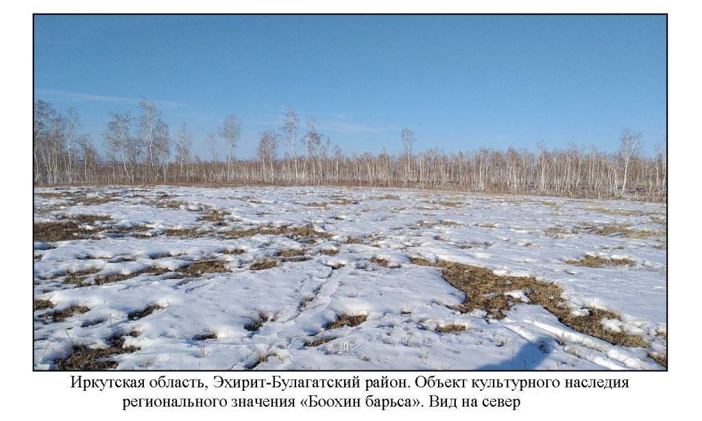 Предметом охраны объекта культурного наследия регионального значения – достопримечательного места «Боохин барьса» (место совершения религиозных обрядов). расположенного в Эхирит-Булагатском районе Иркутской области. в 350 м на юг от ритуального места Боохин тайлаган. на опушке березового места. в 3.9 км к северо-западу от села Олой. площадью 7695 кв.м.. являются:- часть земной поверхности в границах территории объекта с существующими формами рельефа и расположенными на территории искусственными сооружениями в виде столбов сэргэ и пр.. которые несут в себе информацию об истории. культуре и быте коренного населения. исповедующего традиционный шаманизм западных бурят в период этнографической современности (XIX-XXI вв. н.э.).