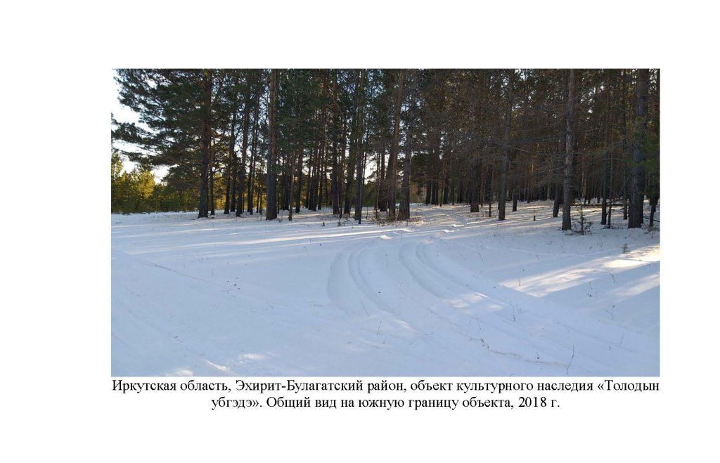 Предметом охраны объекта культурного наследия регионального значения – достопримечательного места «Толодын убгэдэ» (место совершения религиозных обрядов), расположенного в Эхирит-Булагатском районе Иркутской области, в 1,7 км к северу от деревни Толодой, на левом борту пади Опсе-Гол, к югу от ручья Улсы-Гол, площадью 139427 кв.м., являются:- часть земной поверхности в границах территории объекта с существующими формами рельефа и расположенными на территории искусственными сооружениями в виде столбов сэргэ и пр., которые несут в себе информацию об истории, культуре и быте коренного населения, исповедующего традиционный шаманизм западных бурят в период этнографической современности (XIX-XXI вв. н.э.).
