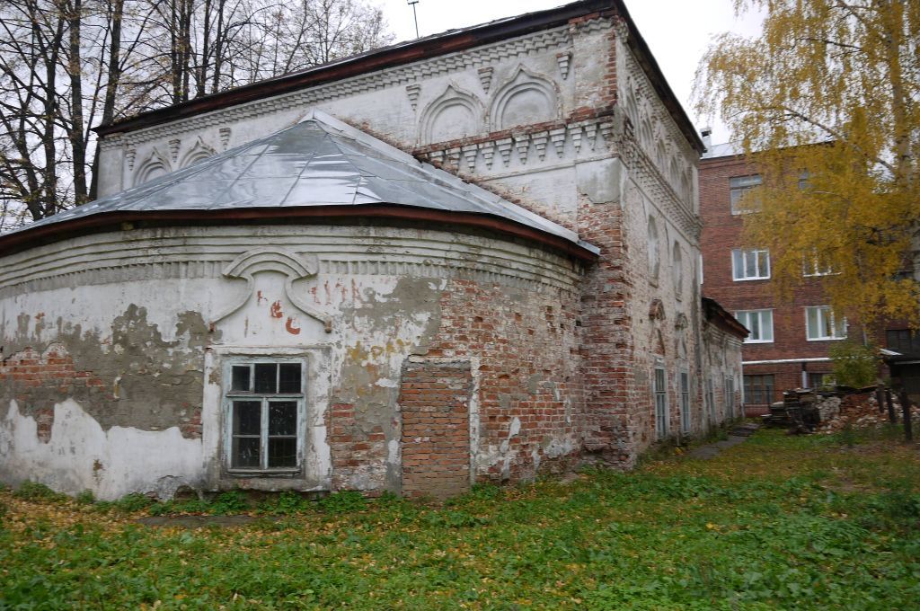 Объемно-пространственная структура объекта: градостроительное положение (расположен в квартале между улицами Крупской и Советской, играет одну из доминирующих ролей в организации застройки нагорной части Кинешмы, вытянут по оси север-юг); план здания (вытянутый прямоугольник с полукруглой апсидой); композиция (к двухсветному основному объему с запада примыкает равная по ширине односветная трапезная, с востока к основному объему примыкает одноапсидный алтарь).Конструктивные особенности: материал (кирпич, дерево, металл); фундамент: бутовый; перекрытия (форма: над основным объемом – лотковые своды, в апсиде – цилиндрические своды, в трапезной – низкий коробовый свод с распалубками над окнами; компоновка связующих материалов, техника кладки); металл (технология изготовления, техника крепления); кровля (форма: основной объем - четырехскатная, апсида – полуциркулярная шатровая; трапезная – двускатная, материал – металл); оконные и дверные проемы (расстановка оконных и дверных проемов, форма, количество, геометрия переплета, материал: дерево).Внешнее декоративное убранство: цоколь (форма: простая; материал: кирпич; композиция: по периметру здания); материал (кирпич, штукатурка, побелка), композиция, декор (широкие лопатки на углах четверика, материал – кирпич), окна (форма – прямоугольные; наличники – широкие сложные, рамочные, с венчанием в виде своеобразного кокошника); восьмигранные глухие декоративные ниши; трехрядный зубчатый карниз, пояс городков; пояс килевидных кокошников, чередуется с одиночными городками.Внутреннее декоративное убранство: элементы планировки; коробковый свод с лотками в торцах основного объема.