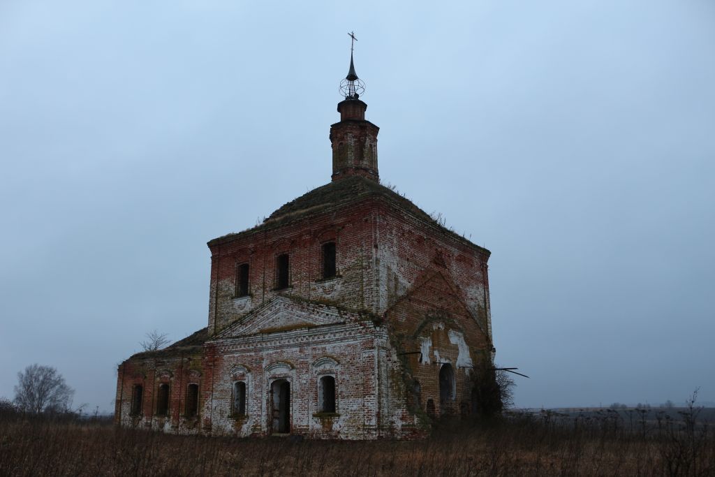 ОБЪЕМНО – ПРОСТРАНСТВЕННАЯ СТРУКТУРА ОБЪЕКТА: местоположение - на открытом пространстве; сочетание прямоугольных объемов собственно храма (высокого, двусветного) и трапезной (одноэтажной), перекрытых кирпичными сводами; объем четверика храма завершен ярусным барабанчиком с луковичной главкой.-КОНСТРУКТИВНЫЕ ОСОБЕННОСТИ: кирпичные стены и своды.-ПЛАНИРОВОЧНАЯ СТРУКТУРА: зальные пространства храма и трапезной.-АРХИТЕКТУРНАЯ КОМПОЗИЦИЯ ФАСАДОВ: на боковых фасадах основного четверика храма - по три оси проемов, на фасадах трапезной - по 3; центральный проем на 1 этаже храма - дверь, чуть более широкая, чем окна; окна одинаковых размеров; декоративный плоскостной портик в нижнем ярусе северного и южного фасадов четверика; четыре пилястры портика, четыре пилястры второго яруса; венчающий карниз четверика; карниз на фасаде трапезной; пилястры на фасадах трапезной на углах и простенках, между которыми расположены окна; окна имеют наличники.-ВНЕШНЕЕ ДЕКОРАТИВНОЕ УБРАНСТВО: стиль барокко с декоративными элементами стиля классицизм; пилястры - гладкие с двухступенчатым пояском в верхней части (в месте стыковки тела пилястры и капители); карнизы фронтона многоступенчатые с поясом, имитирующим кронштейны; окна - лучковые; наличники окон и дверных проемов - с рамочными обводами, дополненными лучковым трехступенчатым сандриком-бровкой и фартуком; декор - из кирпича; пилястры на углах барабана - гладкие, ниши между ними - арочной формы, с архивольтами.