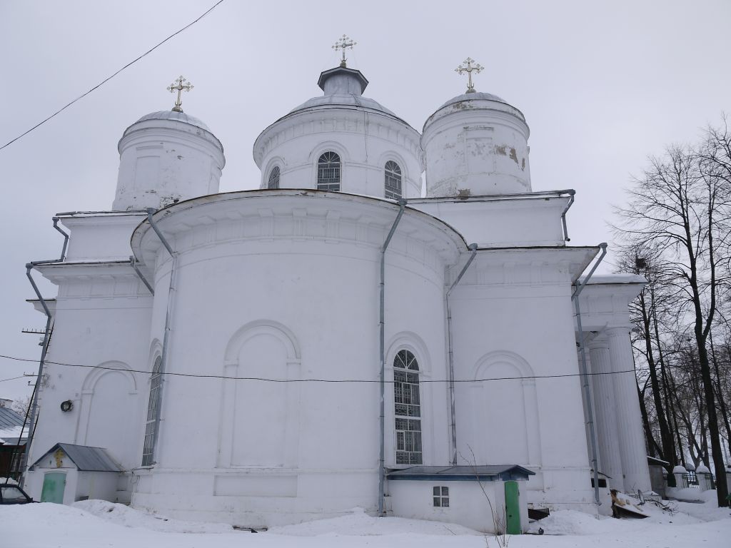 Объемно-пространственная структура объекта: градостроительное положение (в центре города Кинешма, в ансамбле с колокольней и на общей продольной оси с «Успенским (летним)» собором к востоку, на высоком крутом берегу Волги); план здания (крестообразный); композиция (квадратный четверик, к которому с востока примыкает полукруглая апсида, с остальных сторон четырехколонные портики); материал (кирпич, штукатурка, побелка).Конструктивные особенности: материал (кирпич, дерево, металл); фундамент: бутовый; перекрытия (форма: над основным объемом – подпружные арки и паруса, в апсиде – конхи, угловые компартименты – крестовые своды, рукава креста – плоские; компоновка связующих материалов, техника кладки); металл (технология изготовления, техника крепления); кровля (форма: основной объем – четырехскатная, портики с фронтонами, апсида – полуциркулярная шатровая; материал – металл); оконные и дверные проемы (расстановка оконных и дверных проемов, форма, количество, геометрия переплета, материал: дерево).Внешнее декоративное убранство:- главы основного объема (форма: «пологая» на барабане, центральный купол имеет дополнительный малый купол на шее, количество – пять, материал – металл, композиция покрытия: гладкая) барабаны (форма – цилиндрическая, материал, количество – пять, композиция – центральный барабан световой и крупнее других, остальные четыре – ложные, по углам крыши; декор: многообломный карниз, фриз, тонкие ступенчатые кронштейны, 4 окна полуциркулярные в верхней части, окна в неглубоких нишах, завершены архивольтами, опирающимися на импосты, профилированная тяга; главы папертного придела: (форма: луковичная с «юбкой» на барабане, количество – три, материал – металл, композиция покрытия: чешуйчатая); барабаны аналогичные барабанам основного объема;- основной объем (форма – квадрат, материал, композиция – с южной, северной и западной стороны к четверику примыкают портики, западный портик слегка выдвинут за счет небольшого притвора и возвышается на подиуме, к которому ведут шесть степеней), декор (фронтоны портиков (форма – треугольная, материал, фресковая живопись на фризах фронтонов), композиция – антаблемент портика опирается на четыре каннелированные колонны дорического ордера, на антаблемент опираются фронтоны портиков и аттик четверика), окна (форма – арочные, помещены в неглубокие ниши аналогичной формы), внутри портиков – дверные проемы с полуциркулярной верхней частью; материал, кладка, композиция.- апсида (форма – одночастная полуциркулярная), материал, кладка, композиция – односветная, ниже основного объема, три окна (форма – арочная в неглубоких арочных нишах (аналогичны окнам четверика); декор – антаблемент под крышей апсиды.Внутреннее декоративное убранство: четыре центральных столпа (круглые), интерьеры: живопись (материал (масло), сюжеты характерны для сер. 19 – нач. 20 вв., росписи сохранились по всему объему храма), характерны сочетания разных стилей живописи.