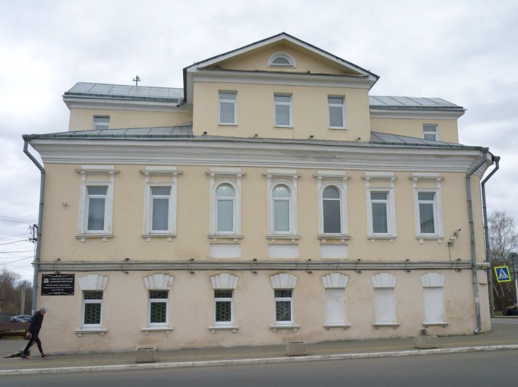 Местоположение: расположение в историческом центре города Гаврилова Посада, на углу улиц Р. Люксембург и Дзержинского.2. Объемно-пространственная композиция: здание двухэтажное, в плане близкое к квадрату, с крестчатым мезонином. Северо-западный угол здания закруглен. Кровли мезонинов двускатные.3. Конструкции и материалы: стены основного объема кирпичные, мезонин деревянный, все здание оштукатурено и окрашено. Кровли металлические.4. Элементы фасадной композиции: узкий междуэтажный и широкий венчающий профилированные карнизы. Гладкие фризы и треугольные фронтоны, завершающие мезонины (на южном фасаде мезонин закрыт позднейшей пристройкой). Полуциркульные окна в поле тимпанов, заключенные в рамочные наличники. Прямоугольная форма окон первого этажа. Оформление оконных проемов крупными веерными замками и подоконными полочками на квадратных плоских консолях. Три центральных арочных окна на втором этаже на северном фасаде. Расположенные под ними лежачие прямоугольные филенки. Прямоугольная форма прочих окон на втором этаже. Высота оконных проемов на втором этаже в 1,5 раза больше, чем на первом. Профилированные наличники окон второго этажа с прямыми сандриками на кронштейнах с широкими прямоугольными подвышениями и подоконными полочками на квадратных плоских консолях.5.Элементы оформления фасадов: профилировка карнизов.6. Элементы оформления интерьеров: цилиндрический свод с распалубками в подвале дома. Лотковые своды с распалубками над проемами в двух следующих друг за другом помещениях первого этажа в западной части дома. Кованые металлические двустворчатые двери, ведущие в комнаты со сводами. Изразцовая печь XIX в. в центральной комнате на втором этаже. Белые изразцы с рельефным орнаментальным рисунком на лицевой стороне.