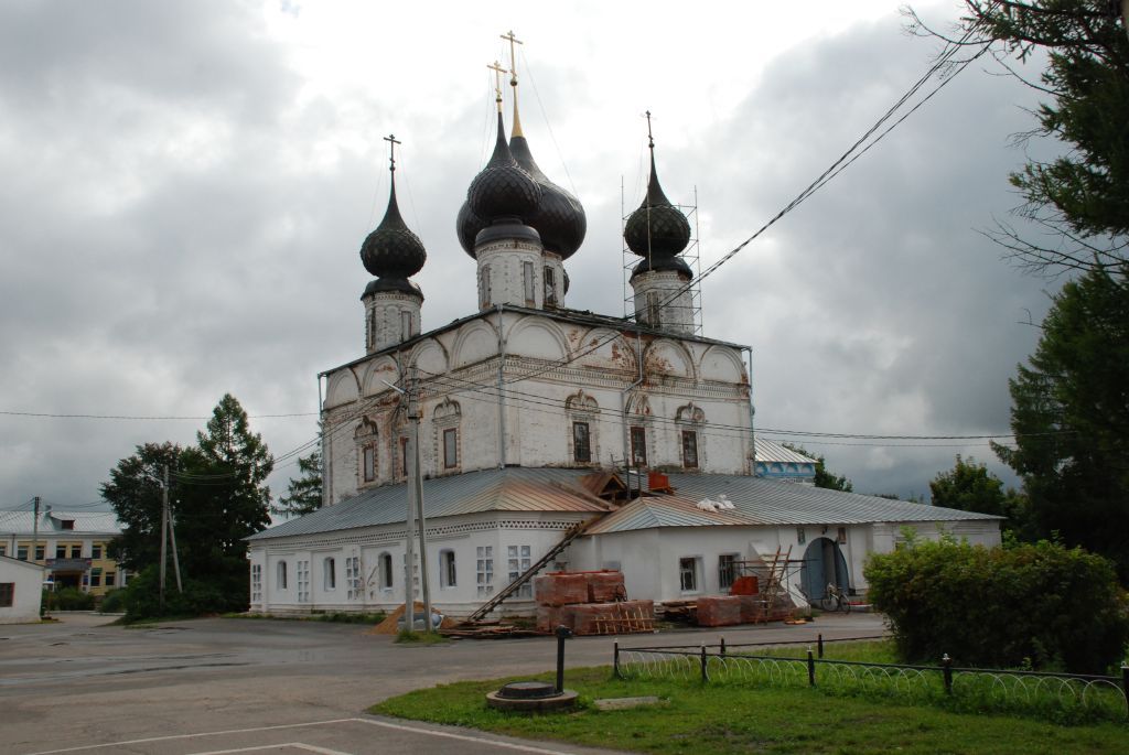 Объемно-пространственная структура объекта: градостроительное положение (расположена центре города на главной площади), план (сложная ассиметричная в плане), композиция (двухсветный четверик завершен четырехскатной кровлей и пятью крупными главами на высоких световых барабанах, три полукруглые апсиды и боковые приделы, на боковом приделе небольшая главка).Конструктивные особенности: материал конструкций (кирпич, дерево, фундамент бутовый); перекрытия (коробовые и лотковые своды в основном объеме, трапезная – сомкнутый свод, апсида – коробовый свод), кровля (четверик – четырехскатная, апсида – вальмовая, полуциркулярная, главки – чешуйчатое железное покрытие); оконные и дверные проемы (форма, материал; композиция, количество, расстекловка, декор, решетки).Внешнее декоративное убранство: на углах основного объема пучки полуколонок, широкий карниз с рядами зубчиков, нишек и поребрика, выше пояс ложных закомар; карниз северной галереи и апсиды украшен бегунцом, стены северной галереи – ширинками, южный предел венчает пояс ложных закомар и фриз из цветных изразцов, барабан главки предела оформлен изразцами; окна – фигурные наличники с наборными колонками и кокошниками различной формы; барабаны четверика декорированы карнизом с сухариками, вертикальные тяги с бусинами и кокошники.Внутреннее декоративное убранство: живопись маслом на хорах, широкий карниз с сухариками между стенами и сводом, на колоннах.