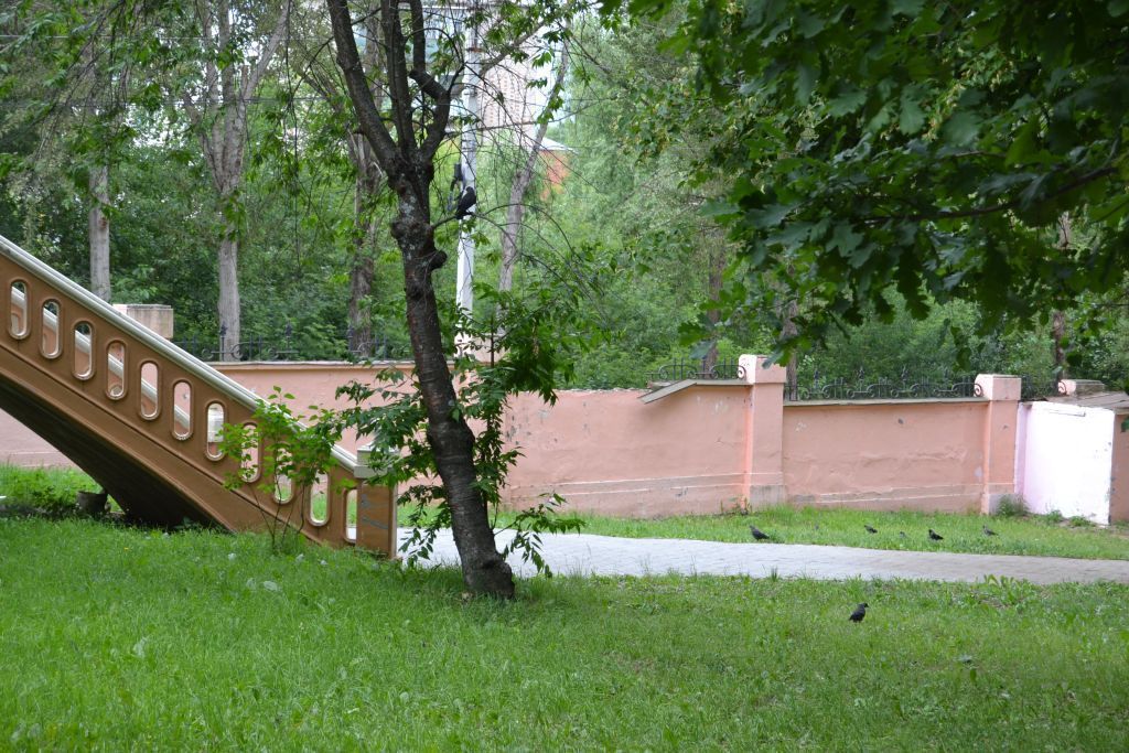«Пруд, аллея, парковая лестница»1. Пруд вытянутой формы, с расширением в юго-западной части размерами около 65 метров в длину и от 20 до 25 метров в ширину.2. Парковая лестница с расширяющимся к земле лестничным маршем, ее бортики с закругленными торцами, высотой около 20-25 см., с центральной широкой и длинной накладкой.3. Аллея длиной около 25 метров из двух рядов высоких деревьев, ее продольная ось совпадает с продольной осью парковой лестницы.