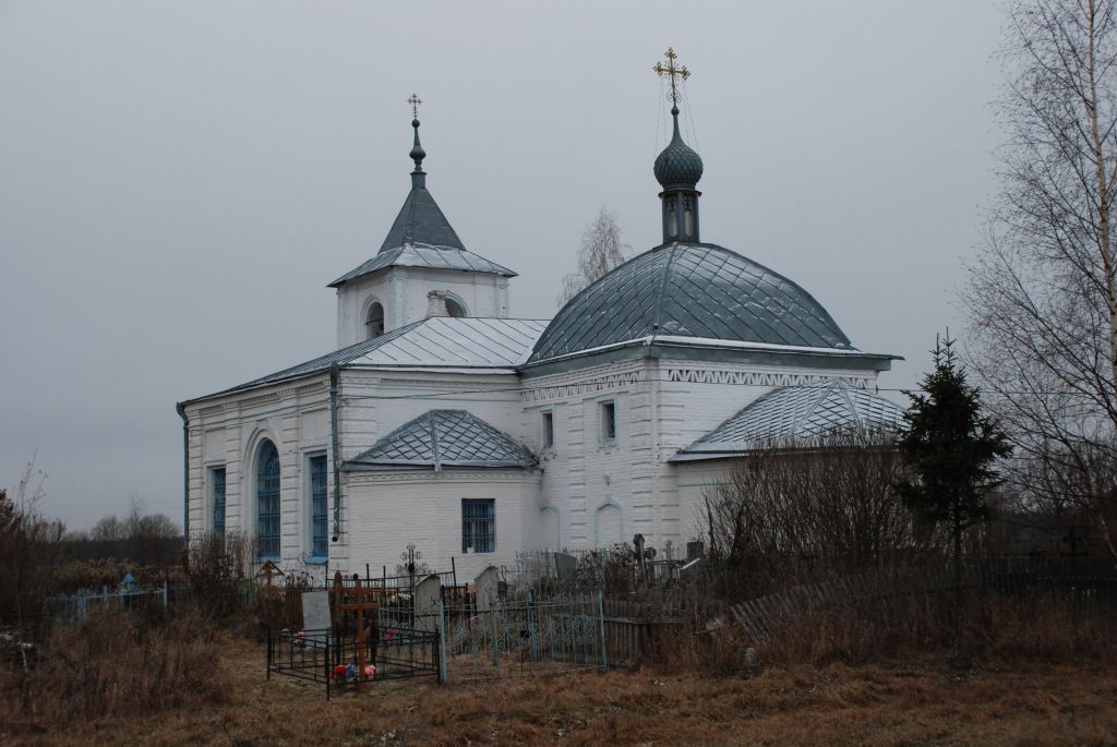 Объемно-пространственная структура объекта: градостроительное положение (расположена в центре села на восточной стороне квадратной площади при пересечении дорог); план здания (сложный в плане); композиция (небольшой кубический объем четверика с пониженной пятигранной апсидой, трапезной, двумя приделами и небольшой колокольней).Конструктивные особенности: материал конструкций (кирпич, дерево, фундамент бутовый); перекрытия (четверик – сомкнутый свод, апсида – коробковый свод, трапезная и пределы – коробковый свод, апсиды пределов – полусомкнутые своды, колокольня – шатер каркасной конструкции), кровля (четверик – шатровая, трапезная – вальмовая, апсида – пятичастная полуциркулярная, пределы трапезной - трехчастная полуциркулярная, колокольня – шатер с пирамидальным покрытием с широкой палицей и миниатюрной главкой); оконные и дверные проемы (форма, материал; композиция, количество, расстекловка, декор).Внешнее декоративное убранство: четверик расчленен широкими рустованными лопатками на две половины, на окнах четверика барочные выступы, карниз кирпичный, украшен сухариками, фриз с геометрическим орнаментом «косицами»; обработка оконных проемов апсиды аналогична нижнему свету четверика, венчающий карниз – несколько полочек, горизонтальная тяга; северный и южный фасады трапезной - три световые оси, окна в нишах, центральное окно с арочной перемычкой, окантован фигурной бровкой, боковые окна высокие с горизонтальными перемычками, выше филенки, углы и межоконные простенки обработаны рустованы лопатками с раскреповкой карниза на них, карниз кирпичный набран из полочек и сухариков; верхний ярус прорезан арочными нишами, углы фасада обработаны филенчатыми лопатками, проемы звона решены в виде перспективного портала.Внутреннее декоративное убранство: масляная живопись на лопатках свода, на уровне пят свода, карниз мелко профилированный с сухариками, на своде апсиды лепная розетка с профилем, который присутствует на наличниках окон, тяга в углах граней храма и медальоны между окнами первого и второго света, главный двухъярусны иконостас, в южном пределе одноярусный иконостас, в северном пределе – нет.