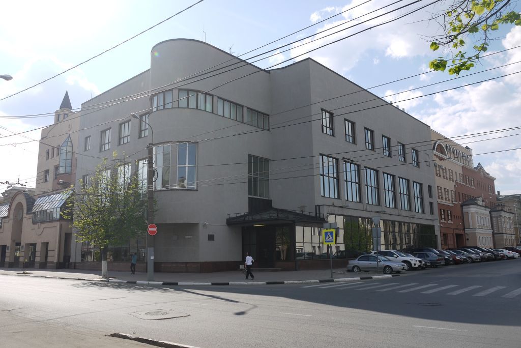 - ОБЪЕМНО-ПРОСТРАНСТВЕННАЯ СТРУКТУРА ОБЪЕКТА:градостроительное положение (расположен в центре города, на пересечении улиц Красной Армии и Театральной, является архитектурной доминантой окружающей застройки); этажность - 3, план здания (Г-образный в плане); композиция (стены кирпичные, оштукатурены с набрызгом цементо-песчаным раствором, цвет окраски: темно-серый, композиция строится на сопоставлении двух, одинаковых по высоте, но различных по длине корпусов (больший выходит на улицу Театральную), объединенных на углу объемом лестничной клетки, обращенным к ул. Красной Армии и нависающим над первым этажом в виде эркера, на фасадах глухой монолит стен контрастирует с прозрачными плоскостями остекления, зрительное нарастание массы стен и убывание стеклянных поверхностей снизу вверх придает впечатление приподнятости объема над землей);- КОНСТРУКТИВНЫЕ ОСОБЕННОСТИ: материал конструкций(кирпич, железобетон, бетон); кровля (форма; пологая двускатная); перекрытия (материал: железобетон); оконные и дверные проемы (форма: прямоугольник, материал: металл, дерево, геометрия рам);- ВНЕШНЕЕ ДЕКОРАТИВНОЕ УБРАНСТВО: оконные проемы(композиция: сплошное остекление стен первого этажа, большие, широкие окна - на втором, меньшие, но четко прорисованные - на третьем), эркер (форма: пластичная, количество: один, декор: оконные проемы (композиция: сплошное остекление этажей); мемориальная доска (форма: прямоугольник, материал: мрамор, текст: «Памятник архитектуры. Здание построено в 1928 г. по проекту архитектора В. А. Веснина (1882-1950), композиция: под эркером).ВНУТРЕННЕЕ ДЕКОРАТИВНОЕ УБРАНСТВО: планировка; столбы (форма: круглая, материал: железобетон, композиция: в двух крупных залах в два ряда); лестница (тип: прямой лестничный марш, количество: три. Композиция: центральная расположена в эркере, остальные по горца здания).