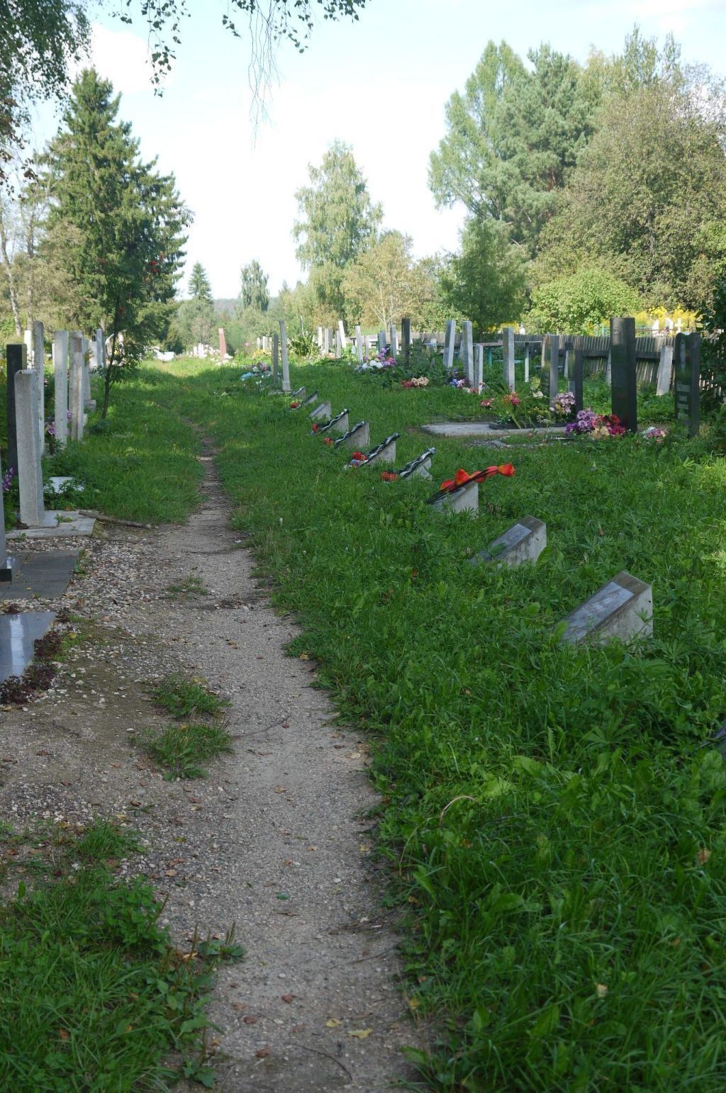 Воинское кладбище, на котором захоронено 107 советских воинов, умерших от ран в госпитале в годы Великой Отечественной войны. (Установлены надгробные плиты и скульптура воина)