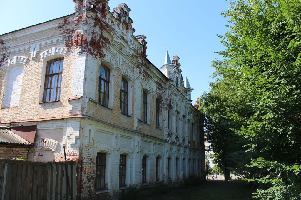- ОБЪЕМНО-ПРОСТРАНСТВЕННАЯ СТРУКТУРА ОБЪЕКТА: масштаб (этажность: два); градостроительное положение (расположен в юго-восточной части ансамбля застройки площади Союзной, закрепляет ее юго-восточный угол); план здания («П»-образный); расстановки и количество объемов (единый объем); композиция (здание выполнено из красного кирпича в лицевой кладке, не оштукатурено, побелено, здание несимметрично по композиции по оси северо-запад-юго-восток: объем правого крыла здания длиннее на длину ризалита, выполнено с преобладанием форм неоклассицизма в фасадном декоре, протяженность фасадов подчеркнута горизонталями междуэтажных и венчающих карнизов, своеобразие главному фасаду придают внушительные окна со сводчатой верхней частью, окна второго этажа выделяются оригинальной кладкой.- КОНСТРУКТИВНЫЕ ОСОБЕННОСТИ: материал конструкций (стены - кирпич, окна, двери - дерево, лестницы - бетон, чугун); кровля (форма: четырехскатная, сложная, материал: железо); перекрытия (плоские); оконные проемы (форма: первый этаж - прямоугольник, второй этаж полуциркулярные, материал: дерево); дверные проемы (форма: прямоугольник, материал: дерево, металл, композиция: центральные входные проемы на юго-западном фасаде - два входа через простенок).- ВНЕШНЕЕ ДЕКОРАТИВНОЕ УБРАНСТВО: цоколь (форма:плоский с простым изломом в верхней части, материал:кирпич, композиция: оштукатурен, проходит по северо-восточному и юго-восточному фасадам); ризалиты (материал: кирпич, штукатурка, композиция:акцентируют центральную часть главного фасада и боковые крылья главного северо- западного и юго-западного фасадов); пилястры (форма: сложная, материал: кирпич, композиция: обрамляют углы ризалитов на главных фасадах, пары окон на дворовых фасадах); аттики (форма: сложная, материал: кирпич, композиция: аттик центрального ризалита на главном фасаде самый протяженный, обрамлен остроконечными пинаклями, продолжающими оси пилястр, аттики боковых ризалитов главного и юго-западного фасадов имеют уплощенные сверху пинакли сложной формы, дворовые фасады без аттиков с пинаклями, продолжающими оси пилястр); оконные проемы (сандрики (форма полуциркулярная с замками во втором этаже и городками, композиция: расположены над оконными проемами), окна второго этажа центрального ризалита главного фасада украшены слепой аркадой); мемориальные доски (количество: две, форма: прямоугольник, материал бронза, текст: «В этом здании М.В. Фрунзе выступал перед шуйскими рабочими с речью против манифеста царя от 17 октября 1905 года», материал: черный мрамор, текст: Маргелов Василий Филиппович 17.12.1908 1990.4.03 Никто кроме нас», композиция: на юго-западном фасаде в простенке между окнами правого ризалита и на углу левого ризалита); междуэтажные тяги (форма: сложная многообломная, материал: кирпич, количество: две, композиция: акцентируют этажи здания по гтериментру); венчающий карниз (форма:сложная многообломная, материал: кирпич, композиция: по периметру здания).- ВНУТРЕННЕЕ ДЕКОРАТИВНОЕ УБРАНСТВО: лестница (тип: прямой лестничный марш, материал: бетон).