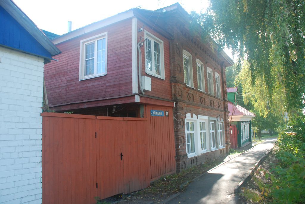 - ОБЪЕМНО-ПРОСТРАНСТВЕННАЯ СТРУКТУРА ОБЪЕКТА:Жилой дом расположен на красной линии ул. Корнилова. Дом двухэтажный, квадратный в плане, завершен четырехскатной кровлей.- КОНСТРУКТИВНЫЕ ОСОБЕННОСТИ:Дом кирпичный.- ВНЕШНЕЕ ДЕКОРАТИВНОЕ УБРАНСТВО:Построен в кирпичном стиле. Главный фасад в четыре оконных оси. Окна первого и второго этажа прямоугольные. Наличники штукатурные. Этажи разделяет межэтажный пояс с нишами и розетками из кирпича в виде ромбов. На углах рустованные пилястры с нишами. Карниз ступенчатый с зубчатым поясом сухариков.- ВНУТРЕННЕЕ ДЕКОРАТИВНОЕ УБРАНСТВО: