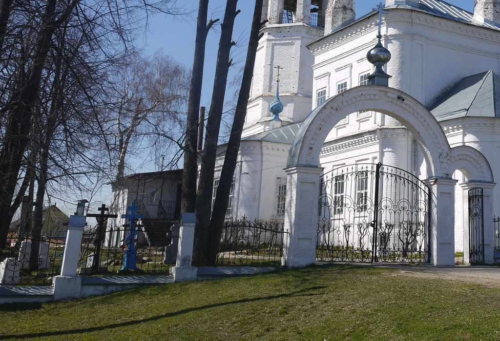 ОБЪЕМНО-ПРОСТРАНСТВЕННАЯ СТРУКТУРА ОБЪЕКТА: градостроительное положение (памятник расположен в северо-западной части села на прямоугольной площади); план памятника (ограда по периметру территории почти прямоугольной формы); композиция (ворота двухчастные, расположены в северной части ограды, южнее оси храма восток-запад).КОНСТРУКТИВНЫЕ ОСОБЕННОСТИ: материал конструкций (кирпич, металл); кровля (арки ворот, луковичная чешуйчатая главка над широкой частью ворот, столбы и основания ограды покрыты металлом);ВНЕШНЕЕ ДЕКОРАТИВНОЕ УБРАНСТВО: по две филенки на западных и восточных плоскостях столбов, поддерживающих арки ворот – верхние прямоугольные, вытянутые по длине столба, нижние почти квадратные, незначительно вытянутые по ширине столба; у основания арок – двухступенчатый карниз; большая и малая арки ворот имеют ступенчатый карниз, украшенный сухариками; решетка ограды и ворот ажурная, с рисунком в виде повторяющихся завитков и ромбов, с вертикальными стреловидными декоративными элементами, в верхней части с завершением полуциркулярной формы, более выраженном на воротах и калитке.