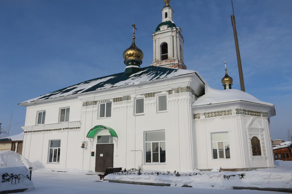 Объемно-пространственная структура: квадратный в плане четверик с пятигранной апсидой с востока и трапезной, равной по ширине основному объему. Кровля вальмовая (рекомендуется разобрать надстройку трапезной советского периода и восстановить первоначальную четырехскатную форму кровли).Конструкции и материалы: здание кирпичное, побелено по кирпичу без штукатурки. Кровля металлическая. Элементы фасадной композиции: лопатки, выделяющие углы апсиды. Сдвоенные лопатки, оформляющие углы основного четверика и делящие боковые стены четверика на два прясла. В каждом из прясел расположено по одному окну (рекомендуется восстановление первоначального вида окон по аналогии с сохранившимися окнами алтаря). Завершение фасадов всех объемов широким фризом и многообломным карнизом с сухариками, раскрепованным на лопатках. Арочные окна на двух гранях алтарной апсиды, заключенные в наличники.Элементы оформления фасадов: фриз включающий ряд полихромных изразцов в виде балясин с гладкими участками над лопатками. Расположенный ниже ряд мелких кубышек. Ряд ступенчатых консолей и соединенных с ними мелких кубышек на фасадах основного объема по нижнему краю фриза. Наличники двух алтарных окон с подоконными профилированными полочками и сандриками типа «разорванного фронтона», ниже которых расположен ряд кубышек. Боковые части наличников из двойных кубышек, разделенных полочками.