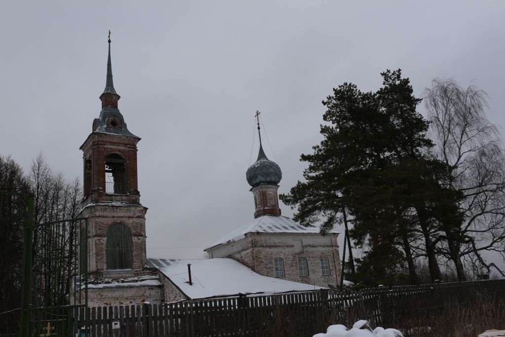 Объёмно-пространственная структура объекта:градостроительное положение (церковь расположена на южной окраине села при большом погосте); план здания (сложной формы); композиция (бесстолпный одноглавый храм с одноапсидным алтарем, относительно широкой бесстолпной трапезной с двумя прямоугольными в плане алтарями, примыкающими к северо-западному и юго-западному углам храма, а также трехъярусной колокольней);Конструктивные особенности: материал конструкций (кирпич, дерево, фундамент бутовый); кровля (трапезной - двускатная, вальмовая над алтарями; четверика, венчающего основную часть здания - стропильная четырехскатная, апсиды - сложной формы); перекрытия (сводчатые; в четверике - 4-х лотковый сомкнутый свод, в апсиде - коробовый свод, переходящий на восточной стороне в уплощенную конху, в трапезной - система коробовых сводов); оконные проемы (форма: прямоугольник, слабо полуциркулярные в верхней части; материал: дерево; композиция: окна второго света четверика -трехчастная композиция; по 4 окна с северного и южною фасадов трапезной и по 1 окну с восточной стороны каждого из алтарей, 4 окна апсиды);Внешнее декоративное убранство: по углам четверика и первого яруса колокольни - пилястры с раскрепованными над ними антаблементами, пилястры по углам трапезной, апсид и третьего яруса колокольни; четверик увенчан антаблементом с широким фризом, каждый ярус колокольни - антаблементом с карнизом, декорированным сухариками; лучковые окна трапезной обрамлены наличниками, окна четверика без наличников; арки звона 2 и 3 ярусов колокольни декорированы архивольтом с замковым камнем; купол колокольни четырехгранный с люкарнами; барабан четверика с филенками с килевидными выступами; апсида сложной формы прямоугольная в плане с выступающей на восток полуциркулярной частью.