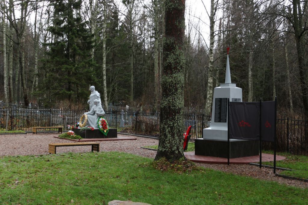 Воинское кладбище, на котором захоронено 100 советских воинов, умерших от ран в госпитале в годы Великой Отечественной войны (Установлены надгробные плиты и скульптурная композиция)