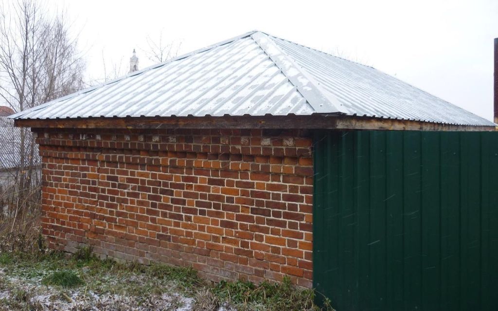 «Сарай», вт. пол. XIX в. (Ивановская область, Юрьевецкий район, г. Юрьевец, въезд Весниных, 8) (вид – памятник).1. Объемно-пространственная композиция: прямоугольный в плане одноэтажный объем под вальмовой кровлей.2. Конструкции и материалы: стены из красного кирпича, фасад в технике лицевой кладки. Кровля металлическая.3. Элементы фасадной композиции: вход в здание со стороны двора. Завершение фасадов двумя полочками с поребриком между ними и карнизом.